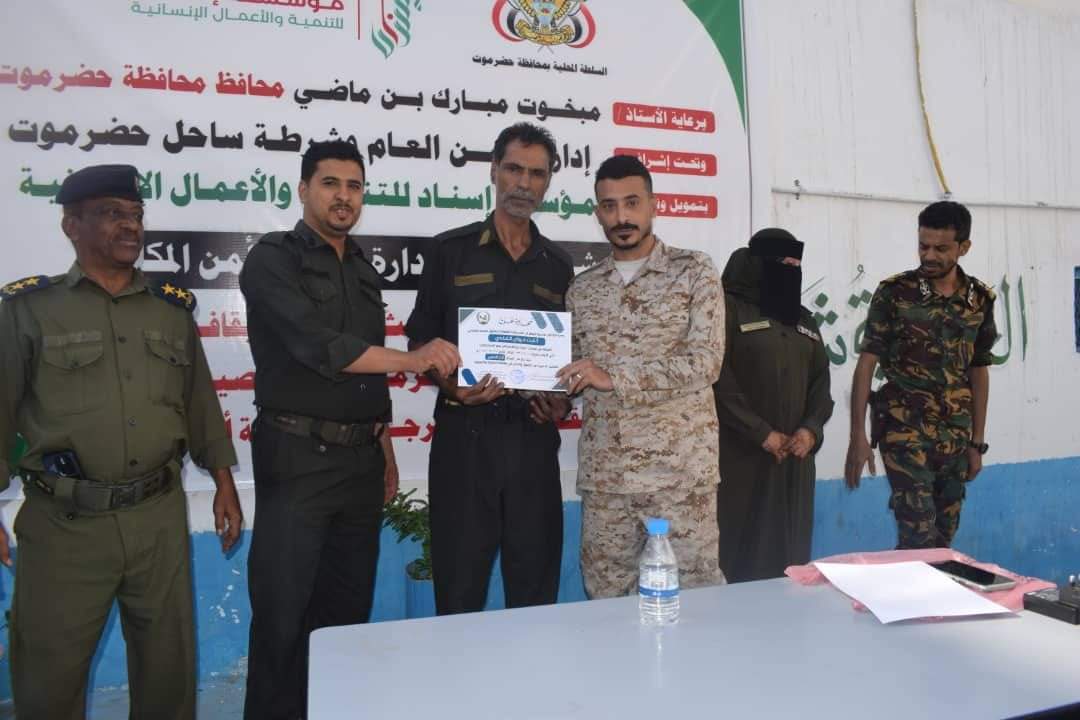 وجرى التكريم بحضور نائب مدير أمن مديرية المكلا العقيد خالد الجمحي ومدير الشرطة النسائية بالمديرية الملازم ثاني انتصار الأسد وعدد من الضباط وصف ضباط.