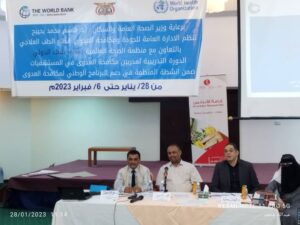 دشنت بقاعة فندق رمادا بالمكلا فعاليات الدورة التدريبية لمدربين مكافحة العدوى في المستشفيات بالمحافظات نظمتها الإدارة العامة للجودة ومكافحة العدوى قطاع الطب العلاجي بوزارة الصحة والسكان بالتعاون مع منظمة الصحة العالمية والبنك الدولي ضمن أنشطة المنظمة لدعم البرنامج الوطني لمكافحة العدوى ، وذلك برعاية كريمة من معالي وزير الصحة العامة والسكان الأستاذ الدكتور قاسم محمد بحيبح ، للفترة من 28يناير حتى 6 فبراير 2023م ، ينفذها عدد من المدربين على رأسهم الدكتور والخبير الدولي المصري أيهاب عطية .