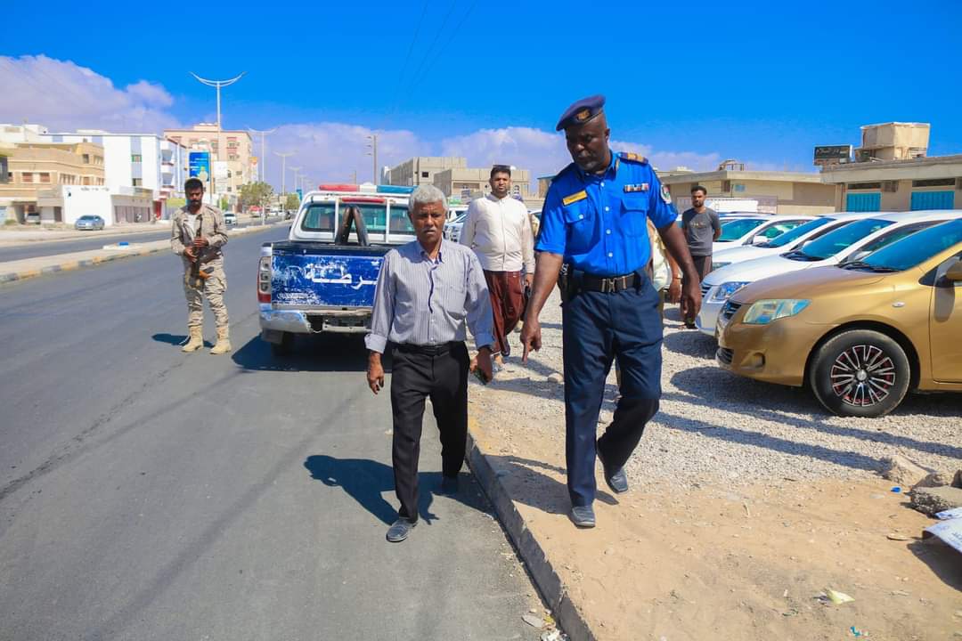 رافق المدير العام خلال النزول الميداني كل من الرائد محمد سالم غرامة مدير إدارة شرطة السير و المهندس أحمد بامختار مدير مكتب التخطيط و التعاون الدولي بالمديرية .