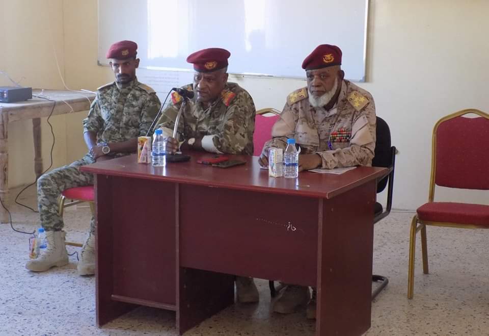 وكان العميد الركن /خالد احمد التميمي استهل المحاضره بكلمة ترحيبه لرئيس شعبة التوجيه المعنوي والمرافقين له وحيا فيها ضباط وأفراد اللواء،واعطى بعد ذلك تسآولات وتوجيهات ومطالبات في آن واحد تمركزت وتمحورت حول النخبة الحضرمية وتعزيز مكانتها في ماتحقق لها في السابق من انتصارات وبسط قوتها وسلطتها في كل مكان في التراب الحضرمي والمنافذالجويه والبحرية على حد سواء