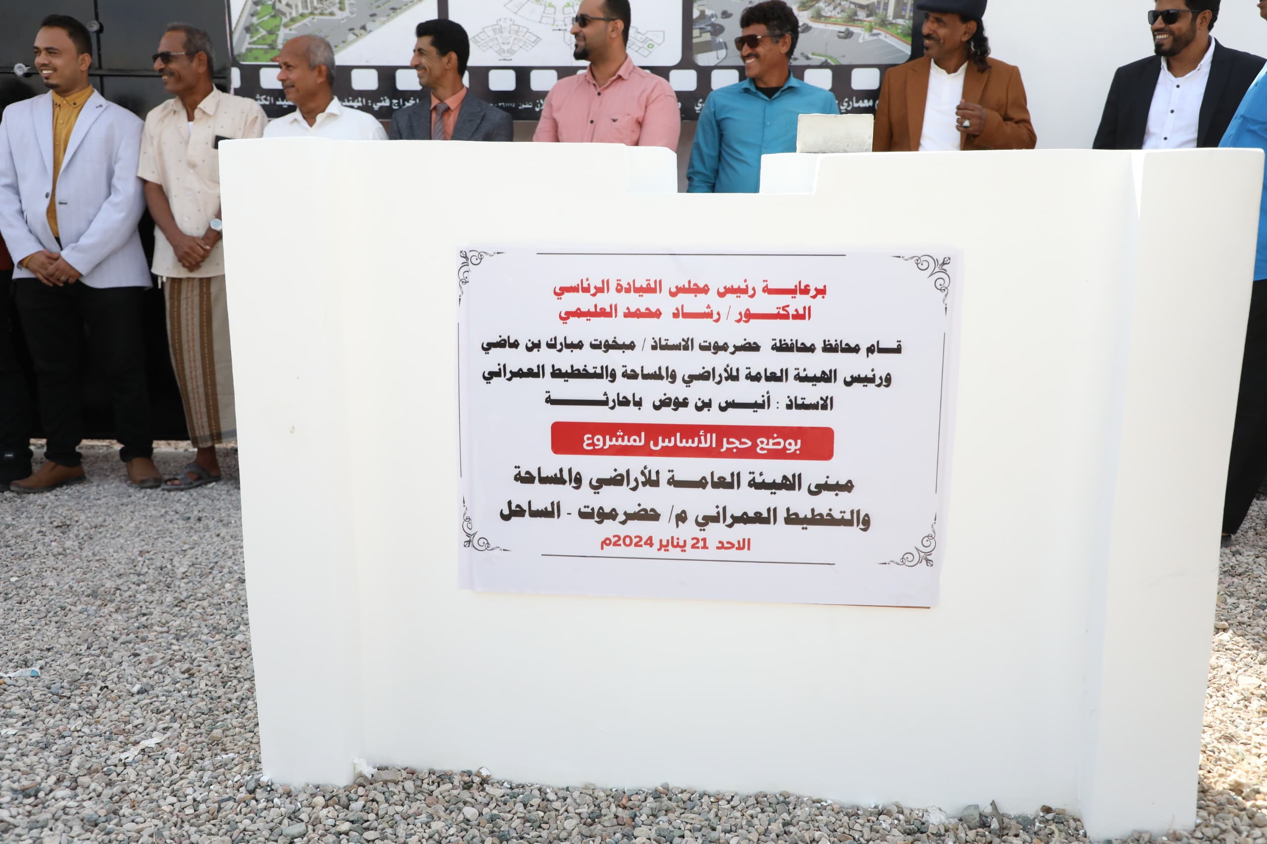 وضع محافظ حضرموت الأستاذ مبخوت مبارك بن ماضي، ورئيس الهيئة العامة للاراضي والمساحة والتخطيط العمراني بالجمهورية أنيس بن عوض باحارثة، اليوم بالمكلا حجر الأساس لمبنى فرع الهيئة العامة للاراضي والمساحة والتخطيط العمراني بساحل حضرموت.