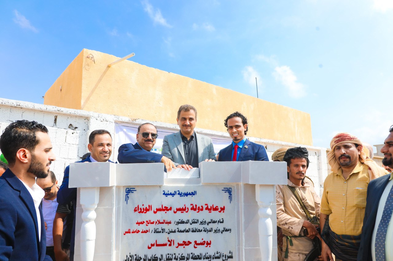 وضع وزير النقل الدكتور عبدالسلام حُميد، ووزير الدولة محافظ عدن أحمد لملس، اليوم حجر الأساس لمشروع انشاء وبناء المحطة المركزية لنقل الركاب المرحلة الأولى، في منطقة العريش بمديرية خور مكسر.