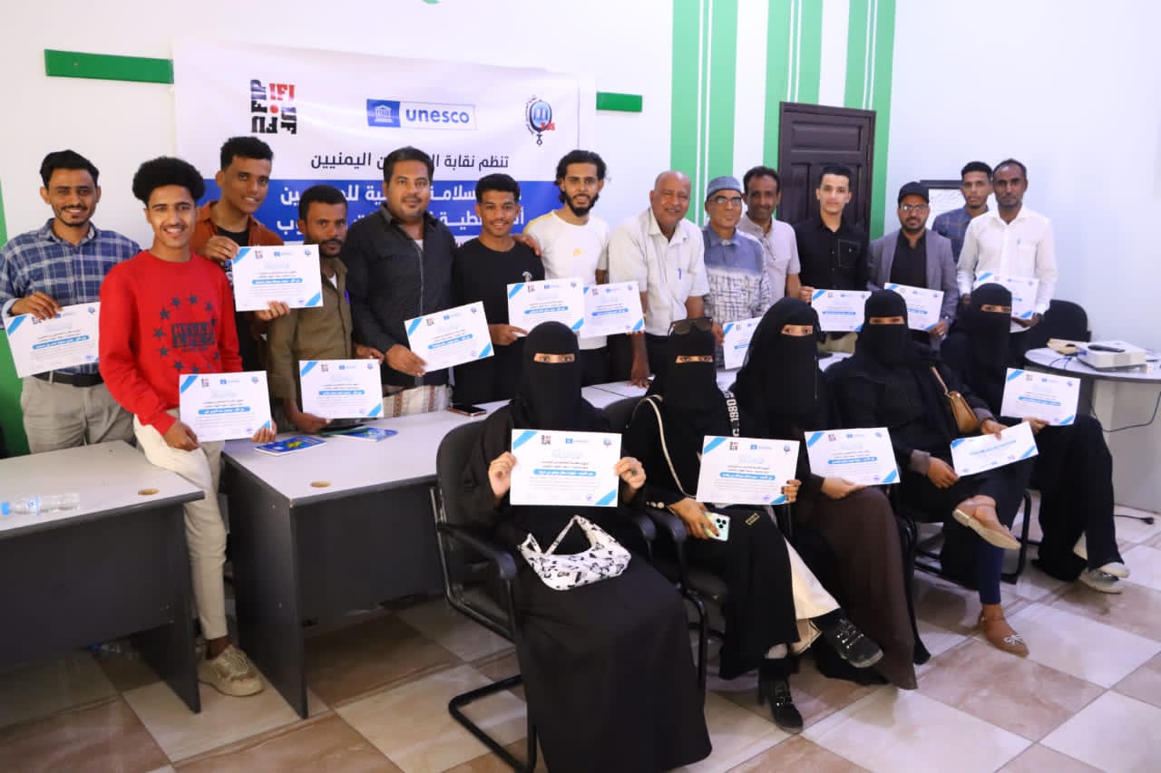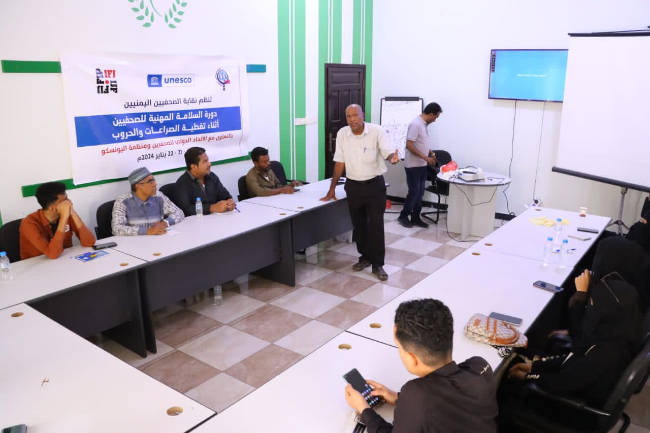 اختتمت نقابة الصحفيين اليمنيين صباح اليوم دورة السلامة المهنية للصحفيين أثناء تغطية الصراعات والحروب ،والتي نظمت بالتعاون بين الإتحاد الدولي ومنظمة اليونسكو ، واستمرت لمدة يومان عمليين .