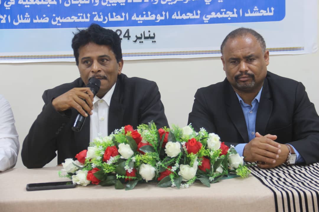 عقد بمدينة المكلا اللقاء التنسيفي للمؤثرين و الاكاديميين واللجان المجتمعية في المجتمع للحشد المجتمعي بمديتي المكلا و أرياف المكلا للحملة الوطنية الطارئة للتحصين ضد شلل الأطفال التي سيتم تدشينها في فبراير 2024م ينفذه مكتب وزارة الصحة العامة والسكان بحضرموت الساحل ممثلا بإدارة التثقيف الصحي ، وذلك برعاية كريمة من معالي وزير الصحة العامة والسكان الأستاذ الدكتور قاسم محمد بحيبح و محافظ محافظة حضرموت الأستاذ مبخوت مبارك بن ماضي بإشراف المركز الوطني للتثقيف الصحي عدن ، وبدعم من منظمتي الصحة العالمية و اليونيسيف .