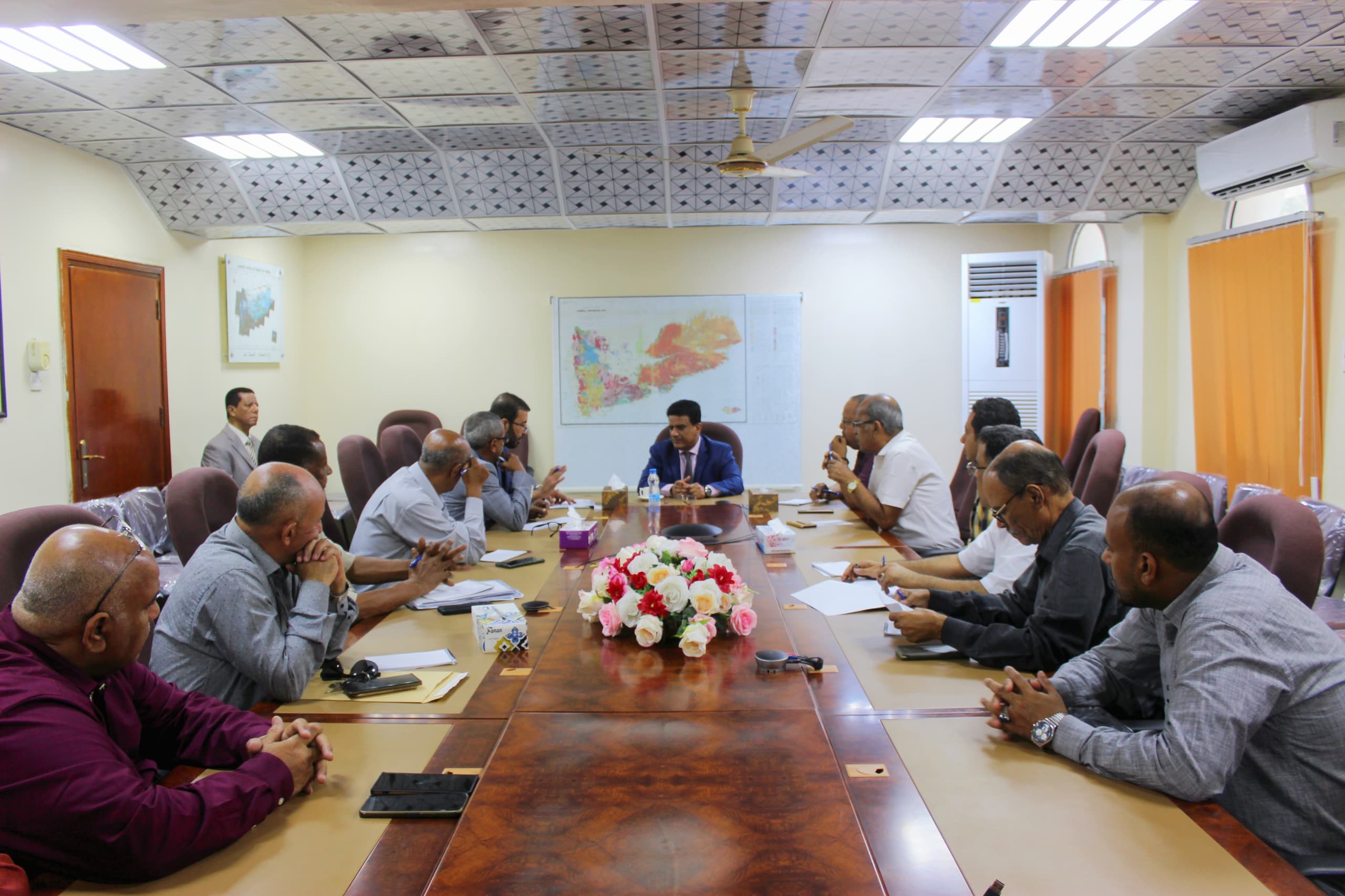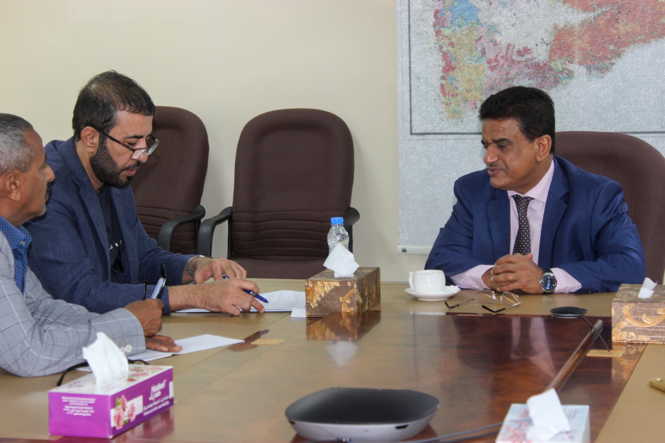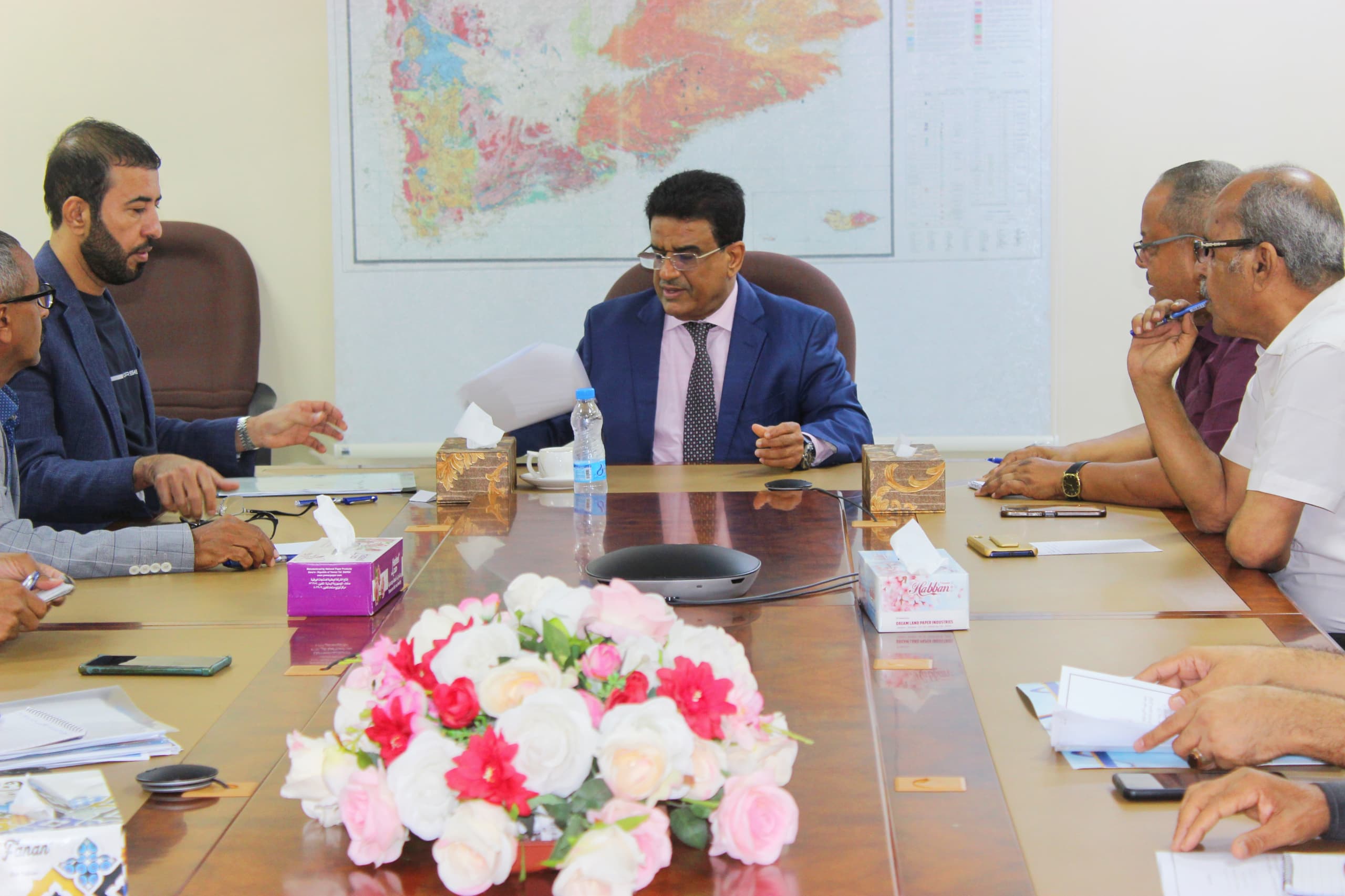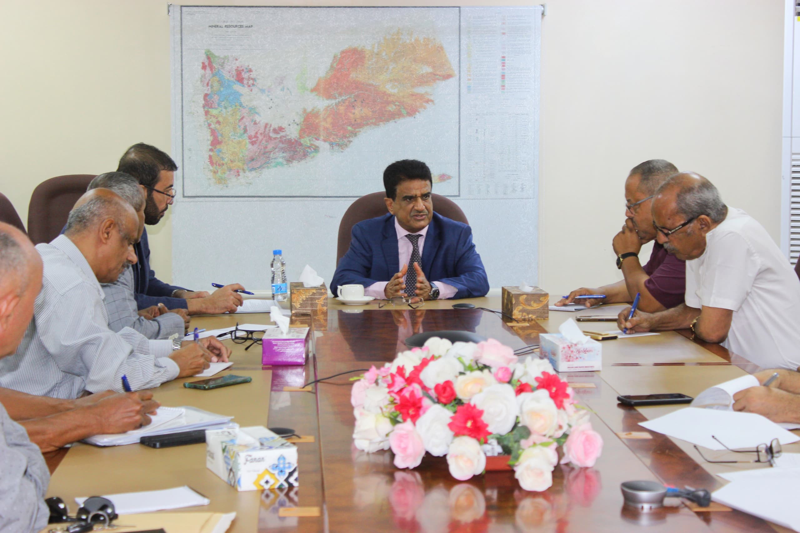 رأس وزير النفط والمعادن الدكتور سعيد سليمان الشماسي، اليوم بالعاصمة المؤقتة عدن اجتماعا لمدراء العموم بديوان عام الوزارة بحضور وكيل الوزارة للشؤون المالية والإدارية الاستاذ طلال بن حيدره لتقييم نشاط وعمل الادرات العامة والسبل الكفيلة بتطوير وتفعيل الأداء ورفع وتيرة الانجاز ،والاطلاع على الخطط والبرامج للعام الجديد واقرارها ، للارتقاء بعملها.