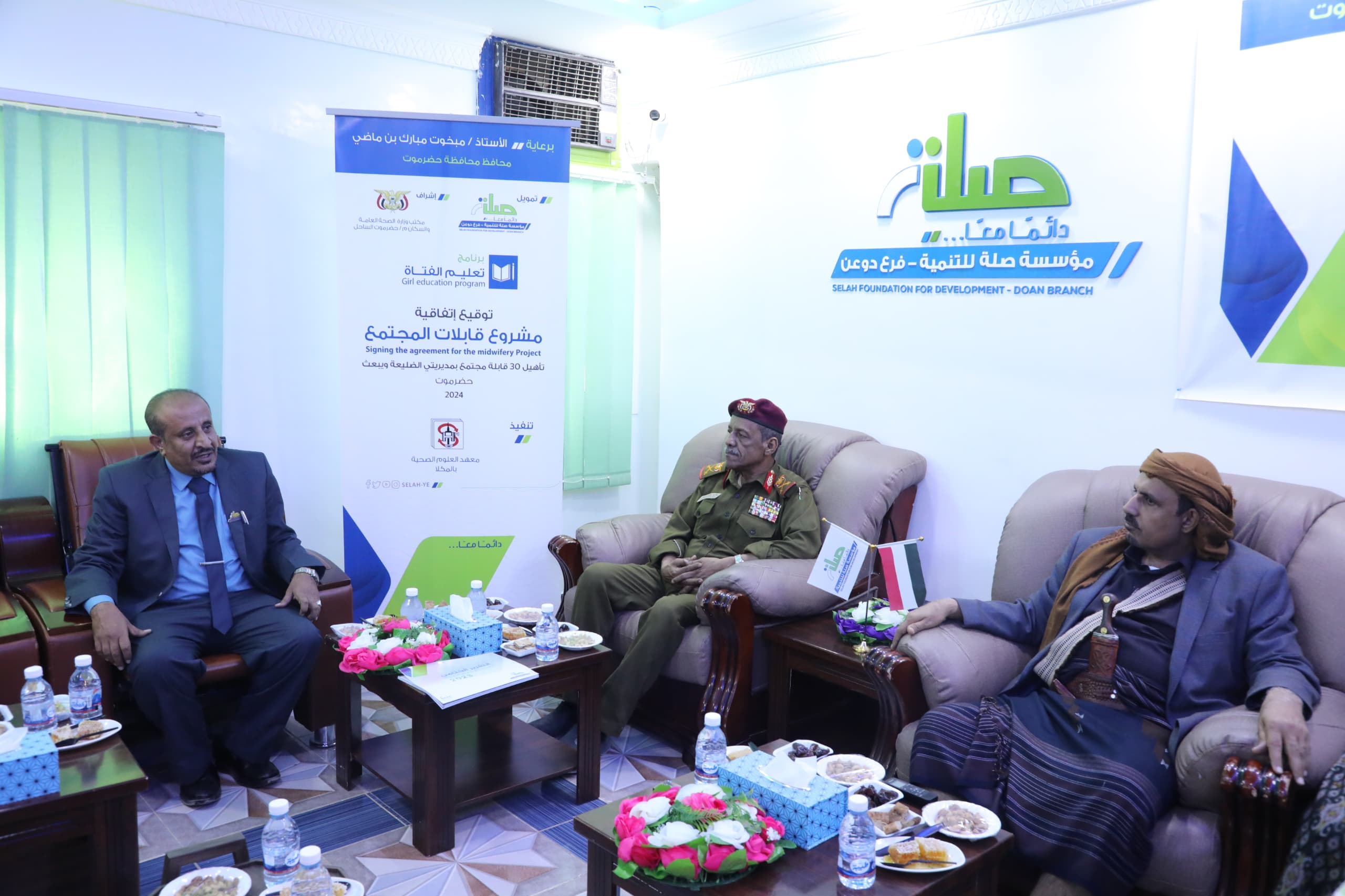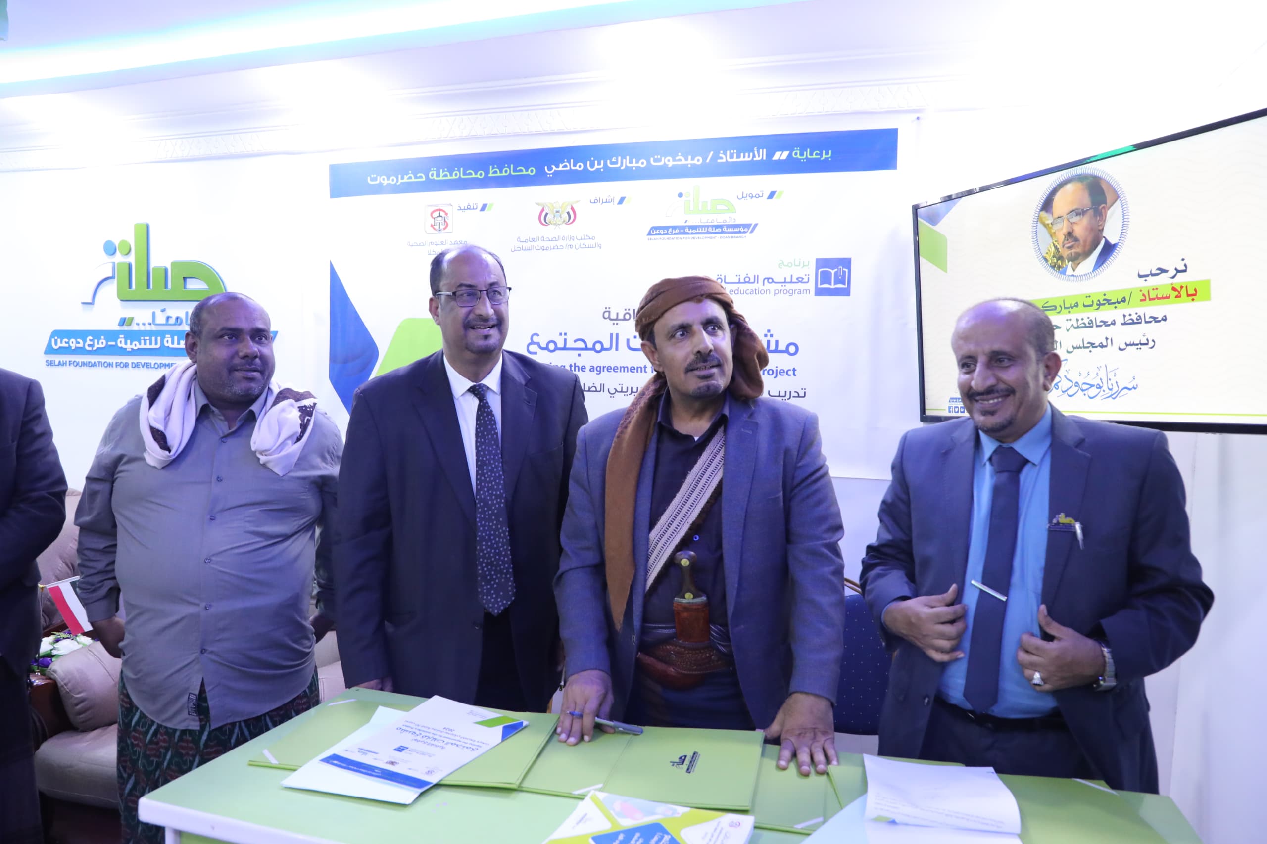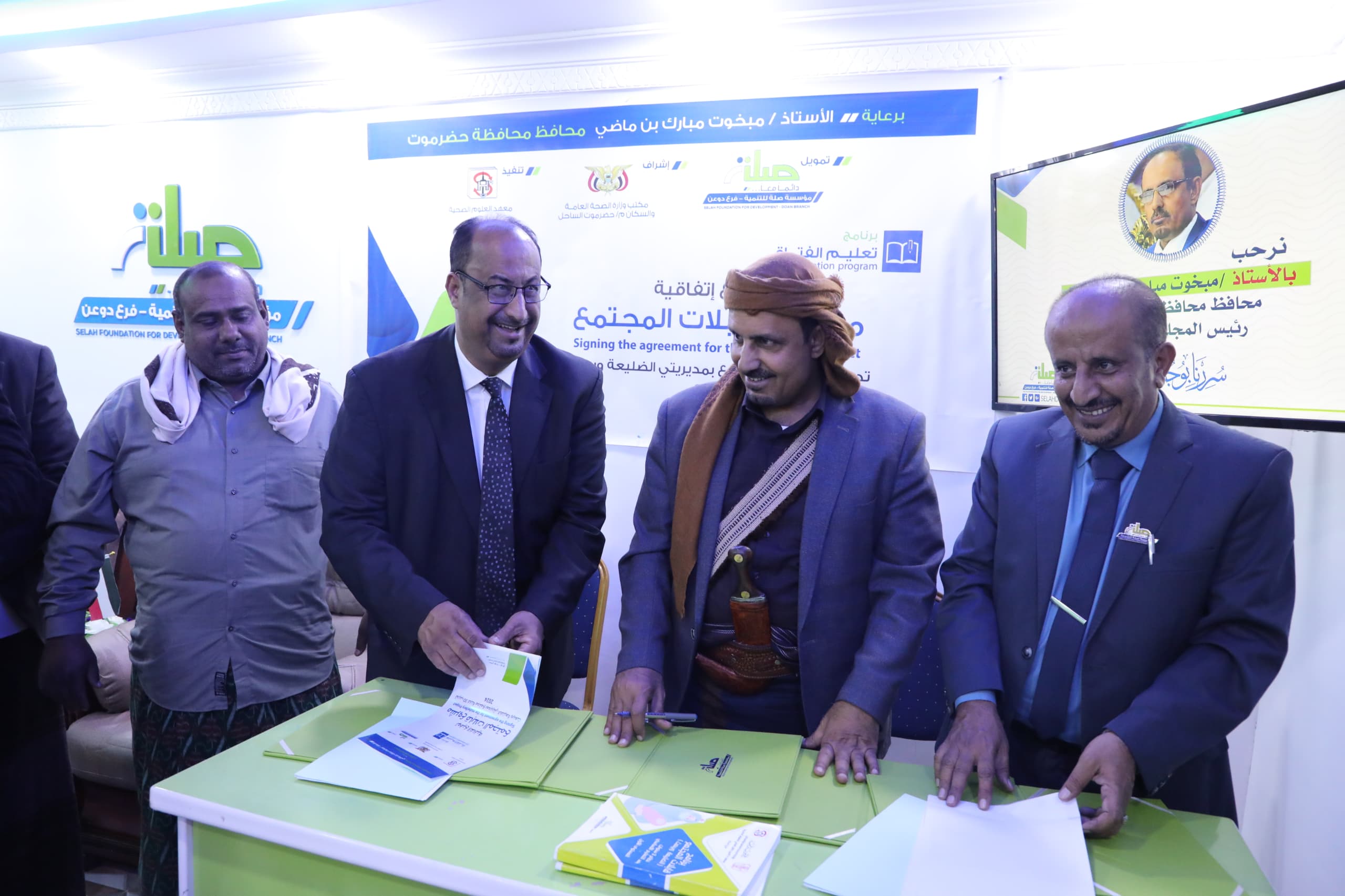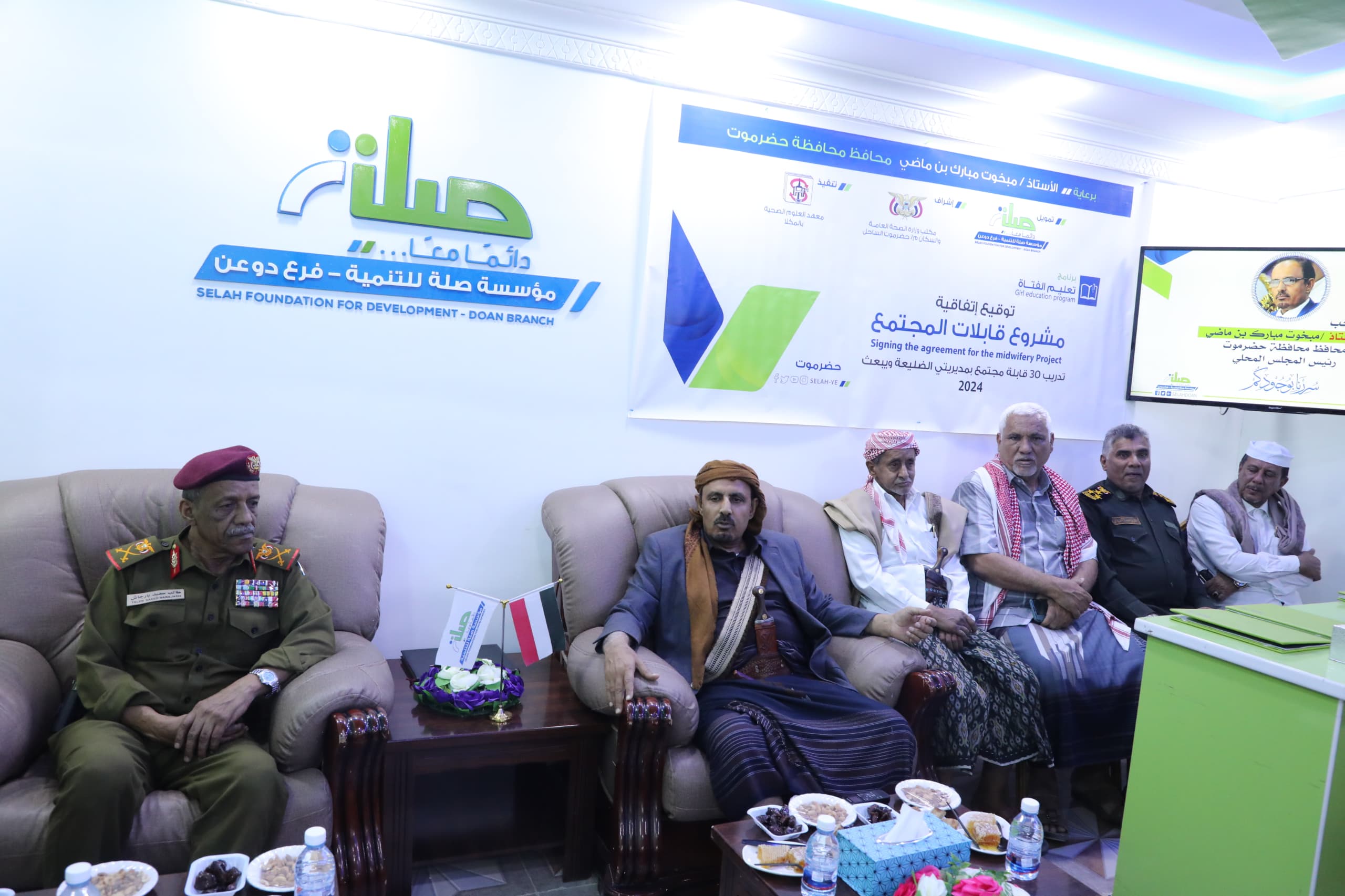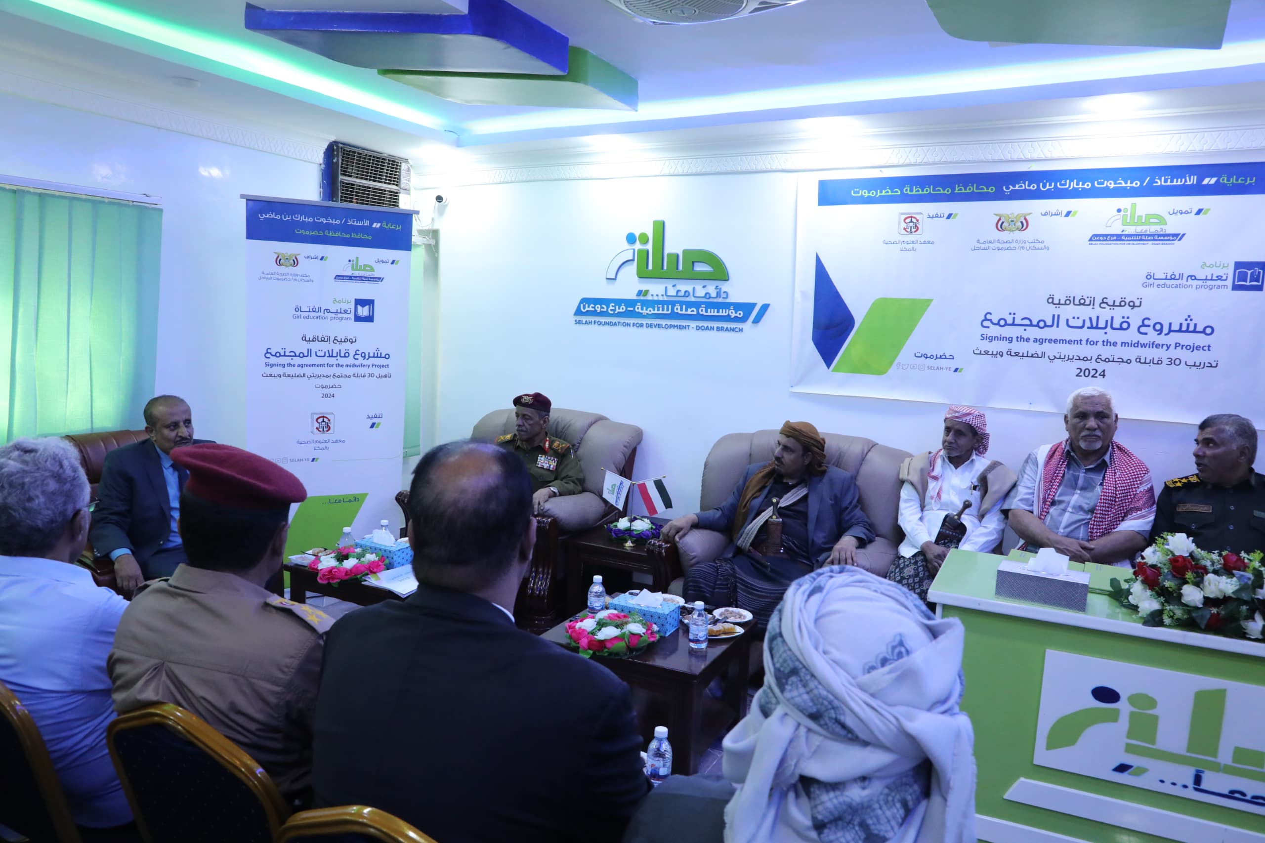 رعى محافظ حضرموت الأستاذ مبخوت مبارك بن ماضي، اليوم بمقر مؤسسة صلة للتنمية بمدينة القويرة بمديرية دوعن، مراسم التوقيع على اتفاقية مشروع تدريب 30 قابلة للمجتمع بمديريتي الضليعة ويبعث، بتمويل من مؤسسة صلة واشراف مكتب الصحة العامة والسكان بساحل حضرموت وتنفيذ معهد العلوم الصحية بالمكلا.