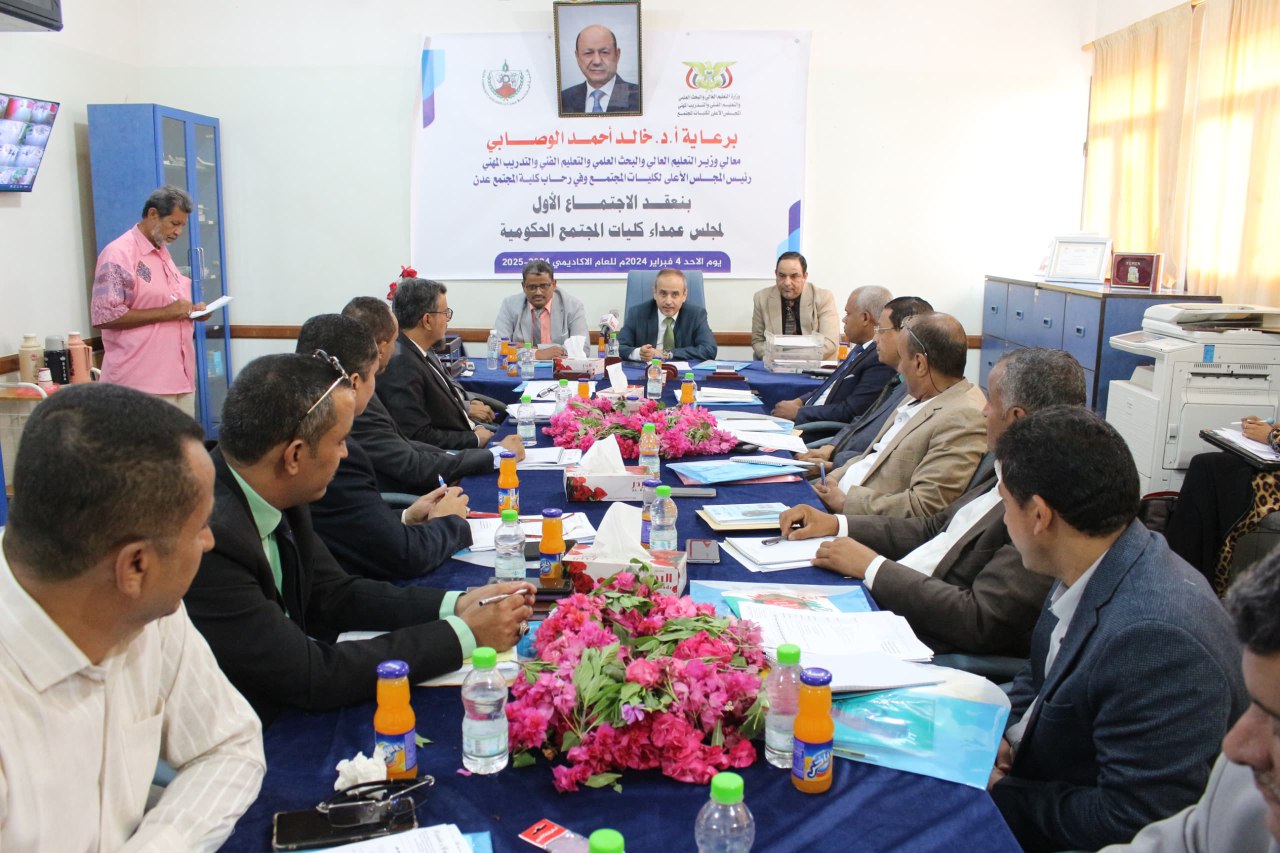 عقد مجلس عمداء كليات المجتمع ، اليوم بعدن ، اجتماع موسع برئاسة وزير التعليم العالي والفني والتدريب المهني الدكتور خالد الوصابي .