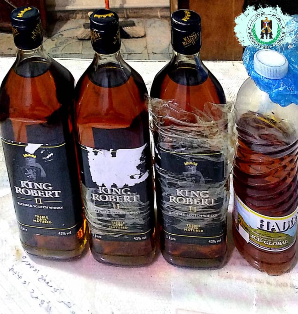 ضبطت قوات الحزام الأمني بمحافظة لحج كمية من الخمور كانت بحوزة شخصين في طريقهما إلى محافظة الضالع
