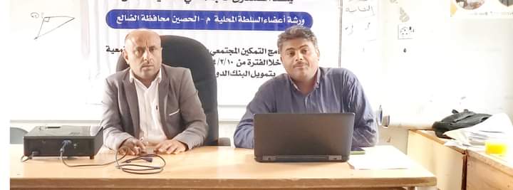 دشن مدير عام مديرية الحصين صلاح الحريري الورشة التدريبية الذي ينفذها الصندوق الاجتماعي للتنمية فرع عدن اليوم السبت، الورشة التدريبية لأعضاء السلطة المحلية بمديرية الحصين محافظة الضالع وفق آلية برنامج التمكين واعداد خطط الصمود المجتمعي بتمويل المنحة السابعة للبنك الدولي.
