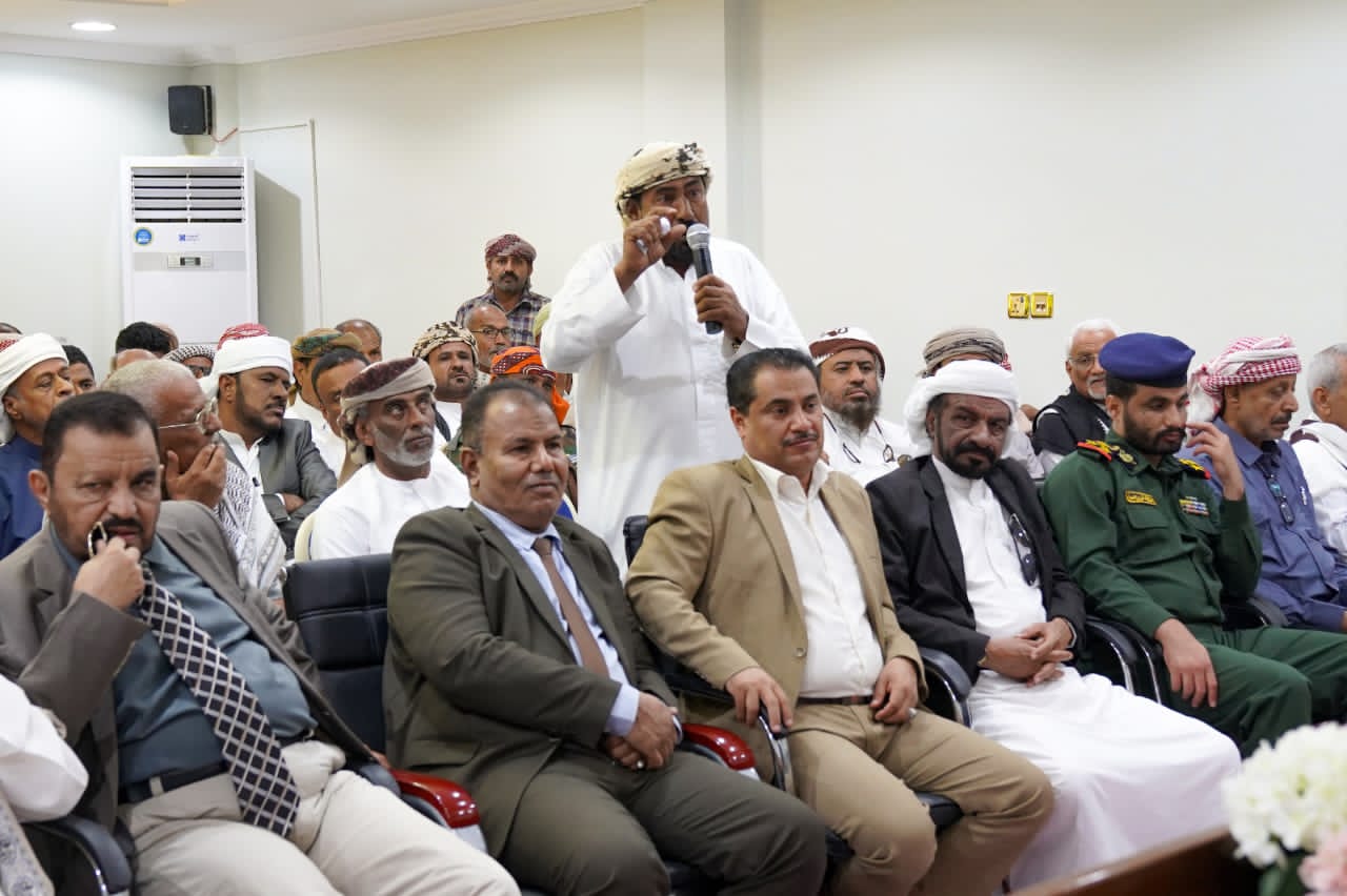 وتخلل اللقاء مداخلات من الحضور، ركزت على الأوضاع العامة في حضرموت، وأهمية إشراك القبائل في القرارات السياسية، ودعم قوات النخبة الحضرمية، وتمكينها من بسط سيطرتها على جميع مديريات محافظة حضرموت، وإيلاء مختلف شرائح المجتمع الرعاية والاهتمام بما فيها قطاعي الشباب والمرأة.. كما تطرقت المداخلات إلى تردي الأوضاع المعيشية والخدمية، والجهود الحكومية المطلوبة لتحسين أوضاع المواطنين.