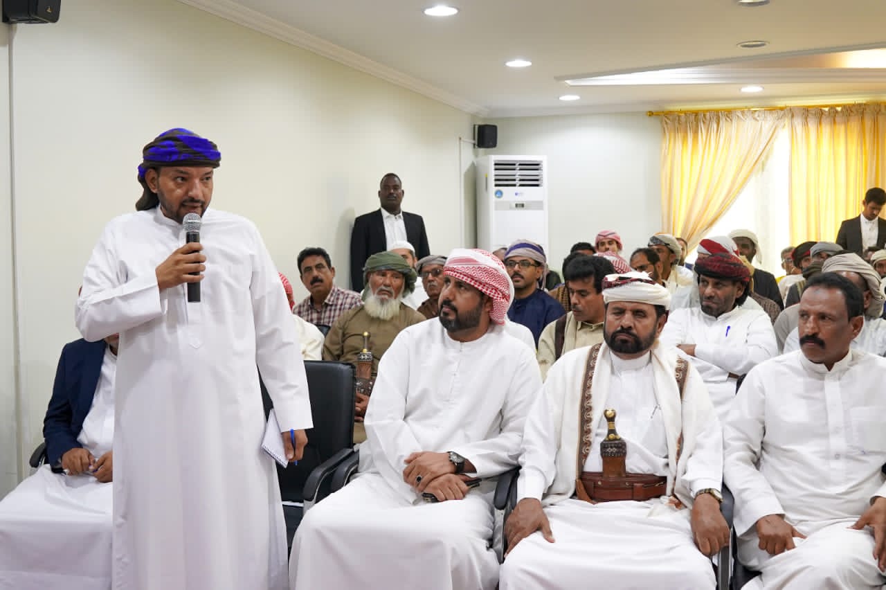 جاء ذلك خلال لقاء عضو مجلس القيادة الرئاسي، اليوم بالمكلا، عدد من مشايخ ومقادمة ومناصب وحكماء القبائل في وادي وصحراء حضرموت، وبحضور وكيل محافظة حضرموت لشؤون مديريات الوادي والصحراء عامر العامري، ووكيل المحافظة سالم بن شرمان، ووكيلا المحافظة المساعدين المهندس هشام السعيدي، ومحمد بن جربوع الصيعري.