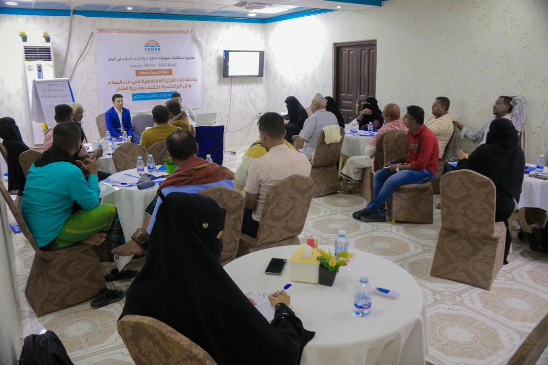 اختتمت اليوم بمديرية الشحر، الدورة التدريبية في بناء قدرات اللجان المجتمعية في بناء السلام وحل النزاعات والتحكيم، ضمن مشروع استكشاف منهجيات محلية وبديلة لدعم السلام في اليمن المرحلة الثالثة بمحافظة حضرموت، بمشاركة ” 20 ” متدرب من اللجان المجتمعية بمديرية الشحر وبحضور رئيس محكمة الشحر الإبتدائية القاضي أبوبكر الخليفي.