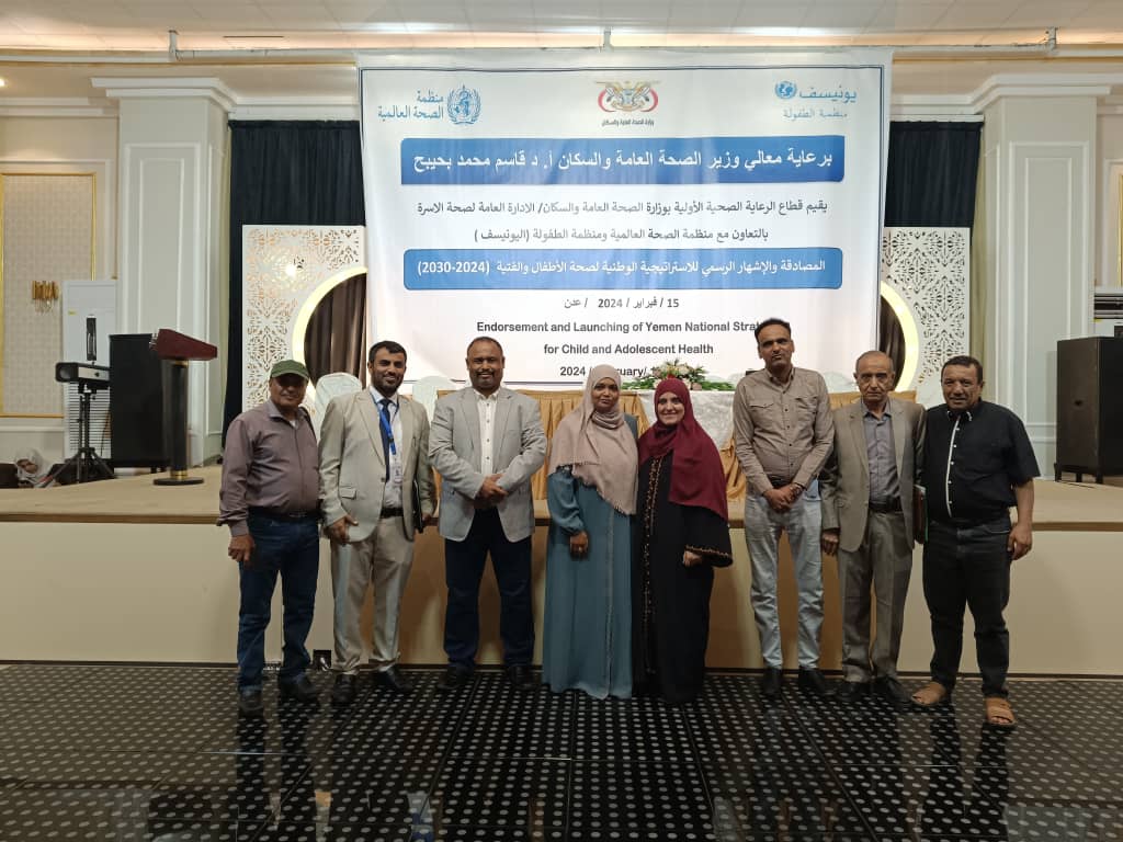 نظمت وزارة الصحة العامة والسكان بالتعاون مع منظمتي الصحة العالمية واليونيسيف حفل التوقيع والاشهار الرسمي للاستراتيجية الوطنية لصحة الاطفال والفتية الذي حضره وزيراً الصحة العامة والسكان الأستاذ الدكتور قاسم محمد بحيبح والتربية والتعليم الأستاذ طارق سالم العكبري ورئيس جامعة عدن الدكتور الخضر ناصر لصور والوكيل الاول لمحافظة عدن محمد نصر الشاذلي ووكلاء وزارة الصحة ومدراء عموم الادارات والبرامج الصحية والأكاديميين ومدراء مكاتب الصحة بالمحافظات وممثلي عدد من المنظمات الدولية و المحلية ، يستمر على مدى خمسة أيام .