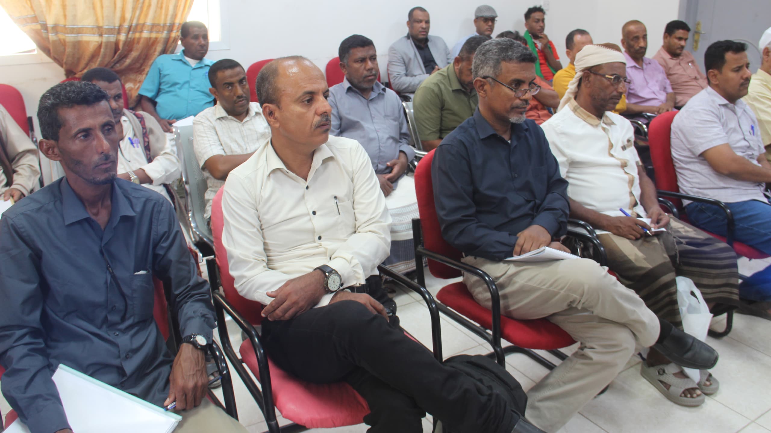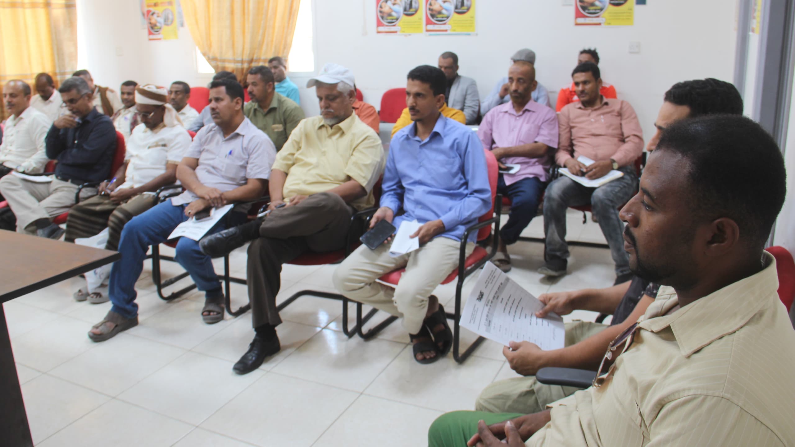 حضر اللقاء كل من : الأستاذ عبدالله باشيخان نائب مدير برنامج التحصين ، الدكتورة رولا سعيد باضريس مدير دائرة الترصد الوبائي ، الدكتور عادل الهدار مدير برنامج الشلل الرخو ، وعدد من المختصين بمكتب وزارة الصحة والسكان بالمديريات و المحافظة .