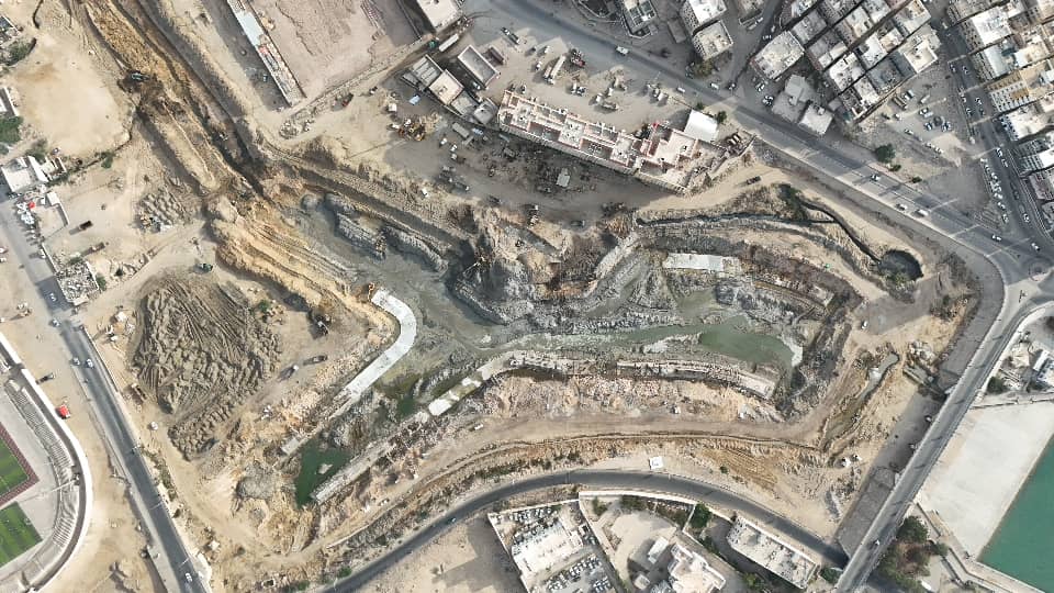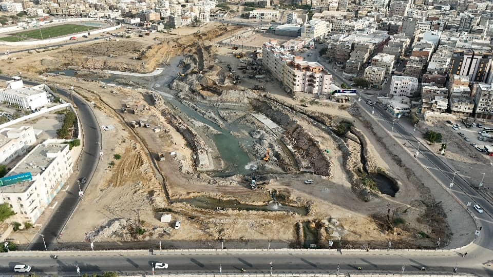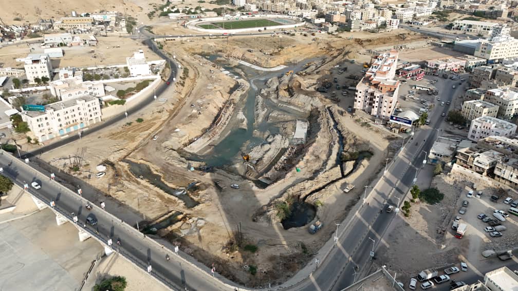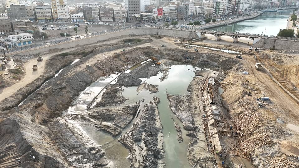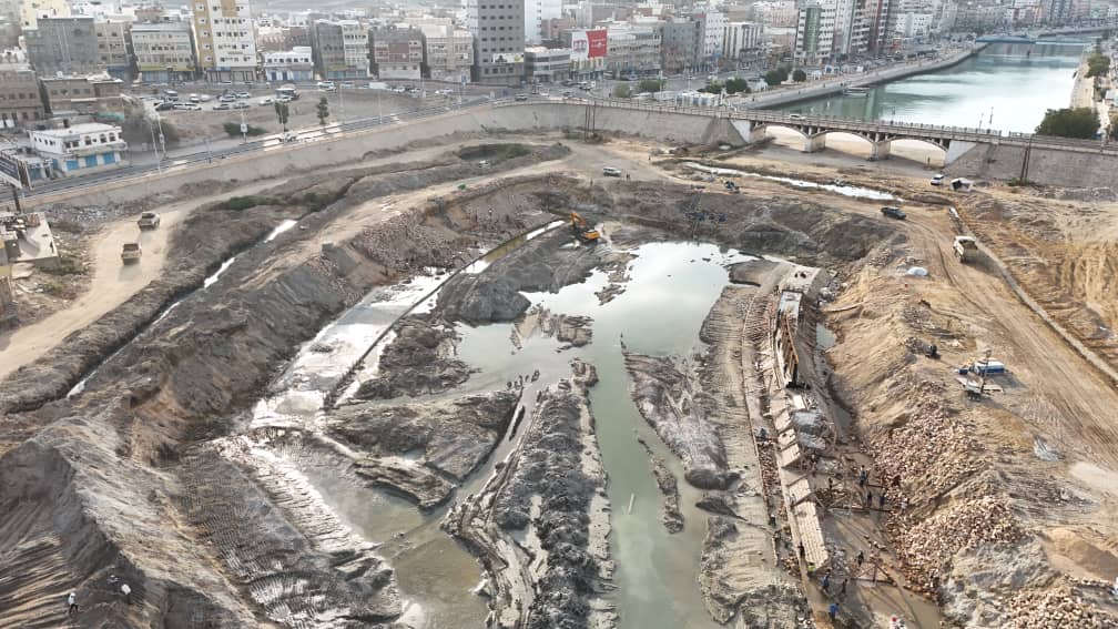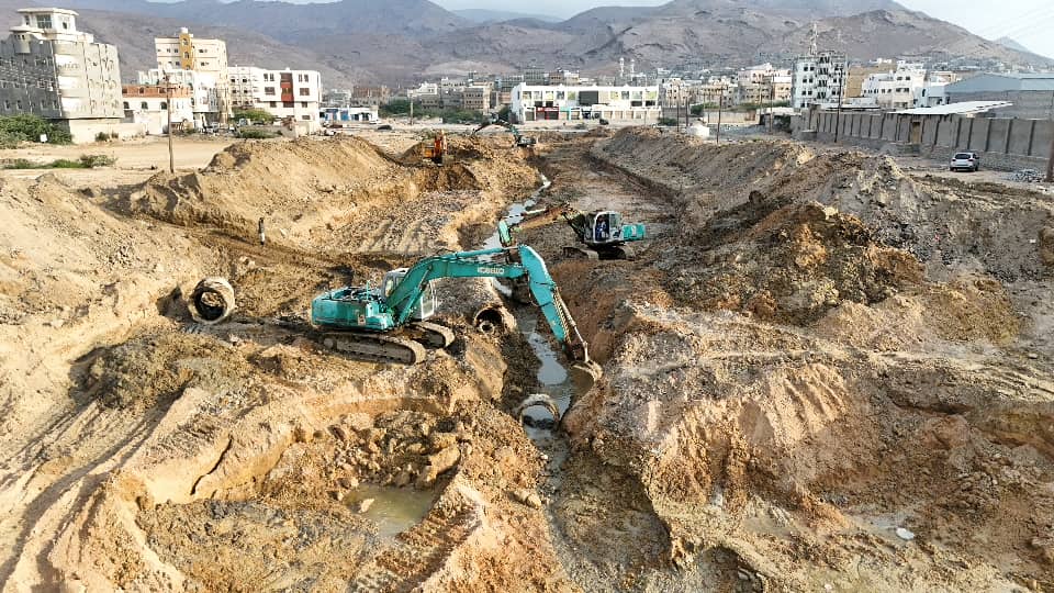 وتعرّف المحافظ ومعه الأمين العام للمجلس المحلي بالمحافظة صالح عبود العمقي، من المدير العام لمكتب وزارة الاشغال العامة والطرق المهندس صالح العمري، ومدير عام مجموعة العمودي للمقاولات العامة والتجارة المحدودة شفيق العمودي واستشاريي المشروع، الى أعمال الحفر الجارية للقناة المائية بطول 850م بمساحة اجمالية 47150م٢ وبعرض متفاوت مابين 60م الى 50م حيث تم تنفيذ 85% من أعمال الحفريات للقناة.