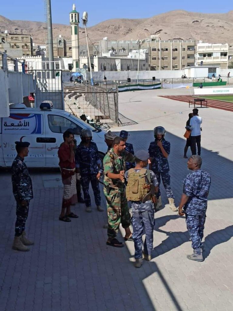 تواصل قوة حماية المنشآت وشرطة الدوريات وأمن الطرق والدفاع المدني بأمن حضرموت الساحل، تأمينها فعالية بطولة كأس حضرموت، الذي تجمع الأندية الرياضية ساحلاً و وادي، على أرضية منشأة الفقيد بارادم بمدينة المكلا.