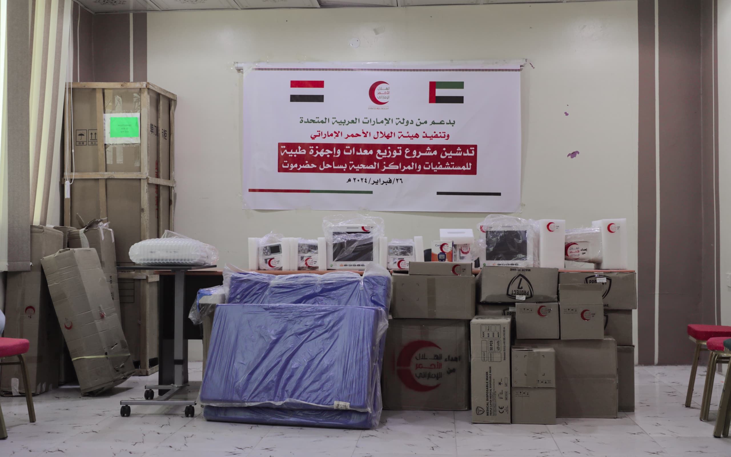 دشنت هيئة الهلال الأحمر الإماراتي مشروع توزيع معدات وأجهزة طبية للمستشفيات والمراكز الصحية في ساحل حضرموت، بهدف تعزيز البنية التحتية الصحية وتحسين الخدمات الطبية في ساحل حضرموت، وتلبية احتياجات المستشفيات والمراكز الصحية في المحافظة.