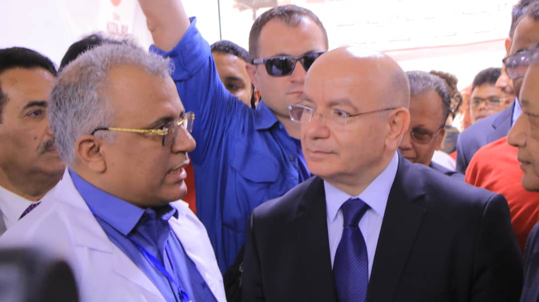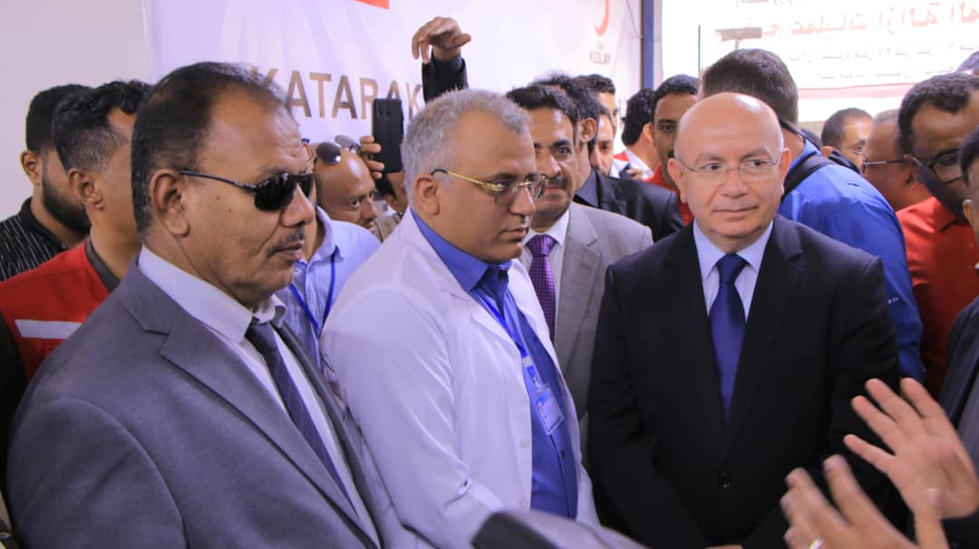 دشن وكيل محافظة حضرموت لشؤون مديريات الوادي والصحراء الاستاذ عامر سعيد العامري ومعه السفير التركي باليمن السيد مصطفى بولات، صباح اليوم، بمستشفى رؤية لطب العيون، بمدينة سيئون، المخيم المجاني لعمليات إزالة المياه البيضاء الذي تنفذة جمعية الهلال الأحمر اليمني بتمويل منظمة الهلال الاحمر التركي.