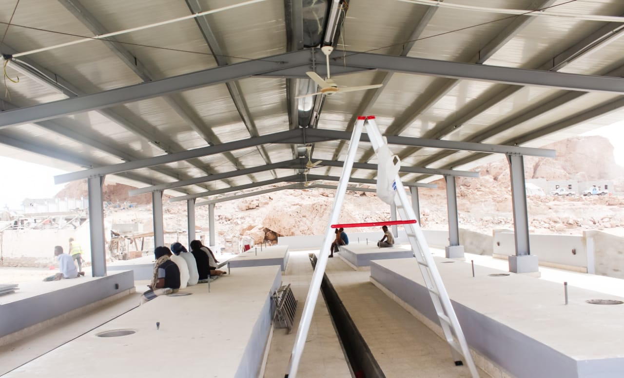ويذكر أن مشروع مركز الإنزال يتمون من .. “مبنى للادارة وساحة للمزاد ومصنع للثلج وحافظة للأسماك ومحطة وقود إضافة إلى غرفة للكهرباء والحراسة وسور” .