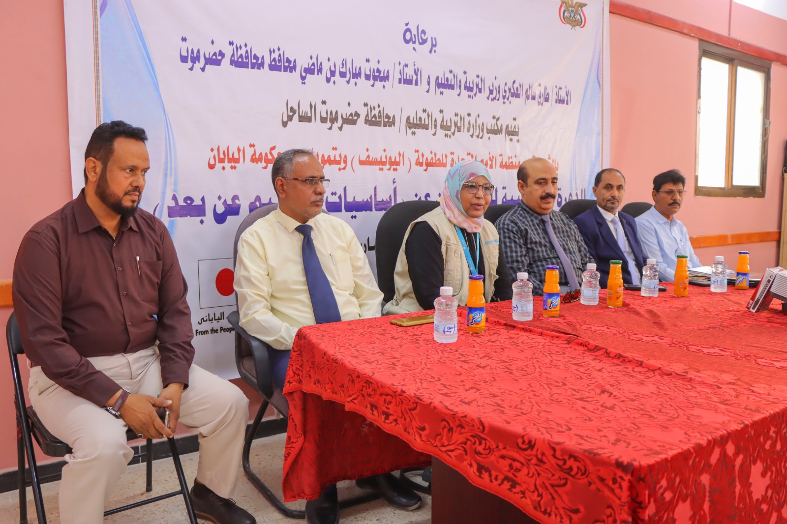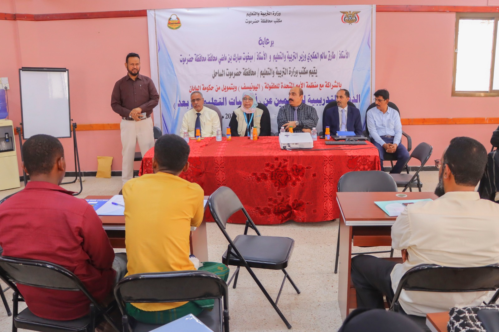 دشن الأستاذ أمين عبد الله باعباد مدير مكتب وزارة التربية والتعليم بمحافظة حضرموت (الساحل) بقاعة مجمع الزهراء التعليمي للبنات الدورتين التدريبيتين للمعلمين في دليلي (الجاهزية للعودة إلى المدارس) و (أساسيات التعليم عن بعد) التي تنظم برعاية كريمة من معالي الأستاذ طارق سالم العكبري وزير التربية والتعليم والأستاذ مبخوت مبارك بن ماضي محافظ محافظة حضرموت وبالتنسيق مع مكتب الوزارة بالمحافظة، بالشراكة مع منظمة الأمم المتحدة للطفولة اليونيسف وبتمويل من الحكومة اليابانية.
