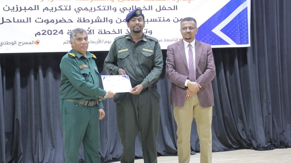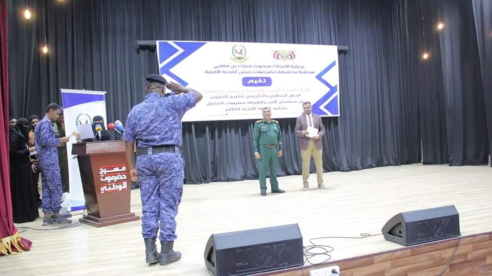 وأكد العميد المنهالي أن تكريم المبرزين من رجال الأمن العام والقيادات الأمنية السابقة يأتي نظير إخلاصهم وعملهم الدؤوب والمتواصل في محاربة الجريمة والحد من وقوعها انطلاقًا من إيمانهم بقدسية واجباتهم الوطنية والإنسانية لحفظ الأرواح والممتلكات، مشيدًا بجهود رجال الأمن الأشاوس إلى جانب إخوانهم الشرفاء في قوات النخبة الحضرمية الذين جعلوا من ساحل حضرموت سدًا منيعًا وقويًا غير قابل للاختراق لكل من يريد العبث بأمن الوطن والمواطن.
