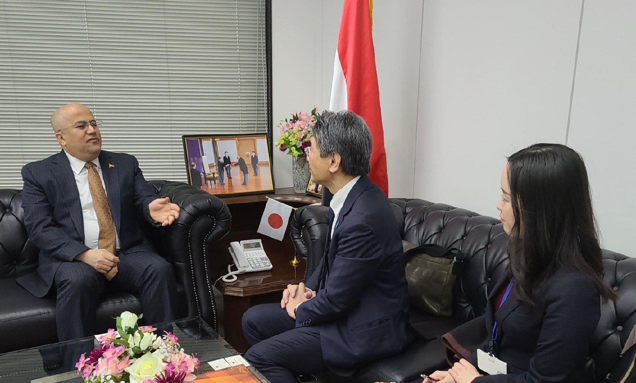 بحث سفير اليمن لدي اليابان عادل السنيني، اليوم، في العاصمة اليابانية طوكيو، مع ممثل الحكومة اليابانية للسلام والاستقرار الدولي وحقوق الإنسان السفير تسوتسومي ناوهيرو، سُبل تعزيز العلاقات الثنائية وجهود عملية السلام.