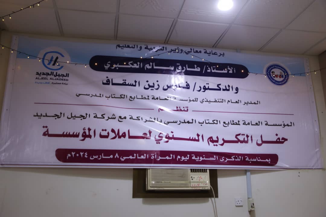 في لفته كريمة ومميزة تحتفل المؤسسة العامة لمطابع الكتاب المدرسي بتكريم المرأة العاملة في المؤسسة تزامناً مع اليوم العالمي للمرأة، وذلك تقديراً لصلابتهن وقيادتهن وأدوارهن وعطائهن الواسع رغم كل الظروف التي تشهدها البلاد لجعل مطابع الكتاب المدرسي من أكثر المؤسسات الوطنية إنتاجاً وانضباطاً ومثالاً يحتدى به في تمكين المرأة ومنحها دورها الريادي في المساهمة والمشاركة في الحياة العملية .
