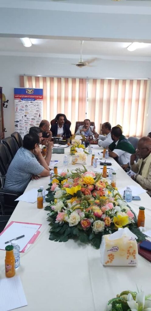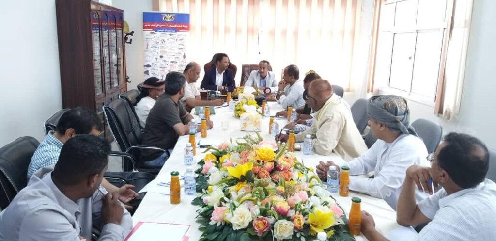 وقف أجتماع موسع في مقر الهيئة العامة للمصائد السمكية في البحر العربي، بمحافظة حضرموت، ضم لجنة التقييم الوزارية، برئاسة، وكيل وزارة الزراعة والري والثروة السمكية، غازي لحمر، بحضور وكيل، محافظة حضرموت، المهندس، أمين سعيد بارزيق، ورئيس الهيئة العامة للمصائد السمكية في البحر العربي، المهندس، يسلم بابلغوم، أمام أنشطة المنشأت السمكية، العامة والخاصة، ومدى التزامها بالمعايير والأشتراطات المعمول بها، وفقآ للقوانيين والتشريعات النافدة، وما أنجزته في التقيد بقرارات الوزارة الهادفه تنظم عمليات الأنتاج لمصانع تعليب الأسماك، وكذا الألتزام في التعامل مع مشروعية الأصطياد لأنواع معينة من الأسماك، والمرتبطة مواسم التكاثر، بهدف الحفاظ على الثروة السمكية، وتحديد أوجه الأختلالات.