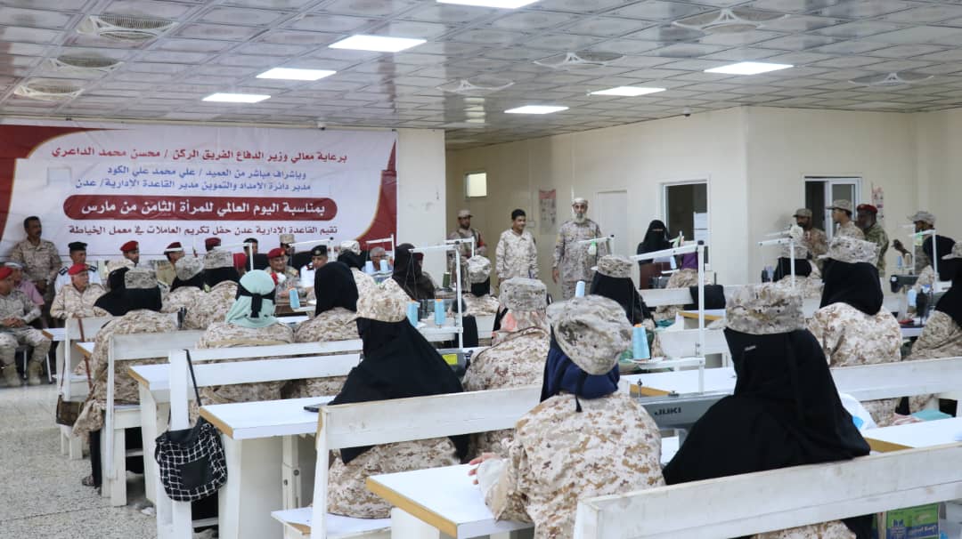 كرمت دائرة الإمداد والتموين والقاعدة الادارية في العاصمة المؤقتة عدن، اليوم العاملات في معمل الخياطة بالقاعدة وذلك بمناسبة اليوم العالمي للمرأة الذي يصادف ٨ مارس من كل عام .