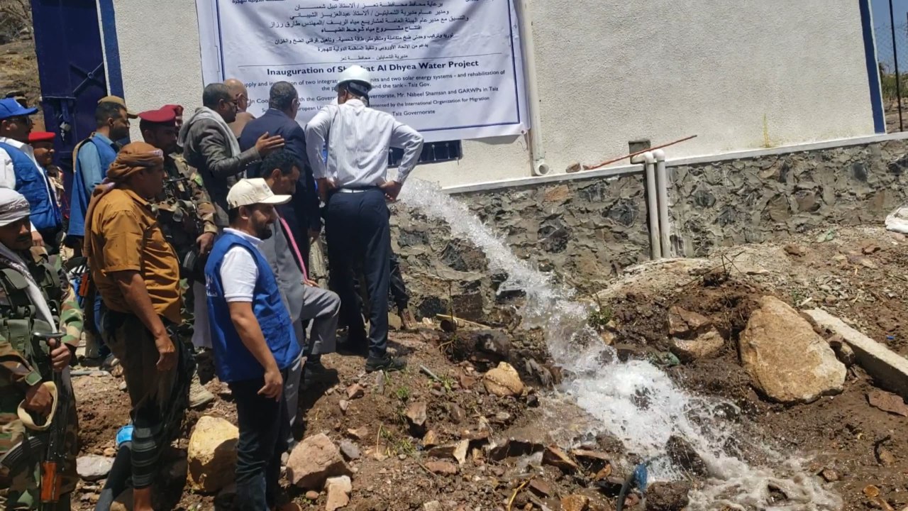 وخلال زيارته الميدانية ومعه وكيل المحافظة محمد عبد العزيز الصنوي، ومدراء الهيئة العامة لمشاريع مياه الريف طارق رزاز، و الشؤون المالية بالمحافظة أحمد مرشد، ومديرية الشمايتين عبد العزيز الشيباني، افتتح المحافظ شمسان مشروع شوحط المكون من وحدات ضخ متكاملة تعمل بالطاقة الشمسية وملحقاته، والخزان وغرف الضخ بتمويل من منظمة الهجرة الدولية.