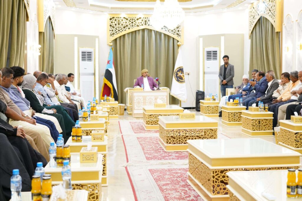 التقى رئيس المجلس الانتقالي الجنوبي، نائب رئيس مجلس القيادة الرئاسي اللواء عيدروس قاسم الزُبيدي مساء اليوم الخميس، عددا من الشخصيات الاجتماعية والقيادات الشبابية في العاصمة عدن.