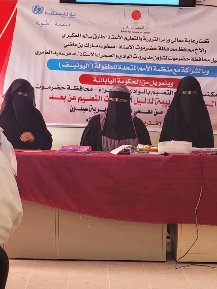 اختتم مكتب التربية والتعليم بمديرية سيئون محافظة حضرموت الدورة التدريبية في أساسيات التعليم عن بعد الذي نظمها بالشراكة مع منظمة اليونيسيف للطفولة بتمويل الحكومة اليابانية والتي أقيمت في قاعة “ربيع النور” بمدرسة النور للبنات بمنطقة القرن.