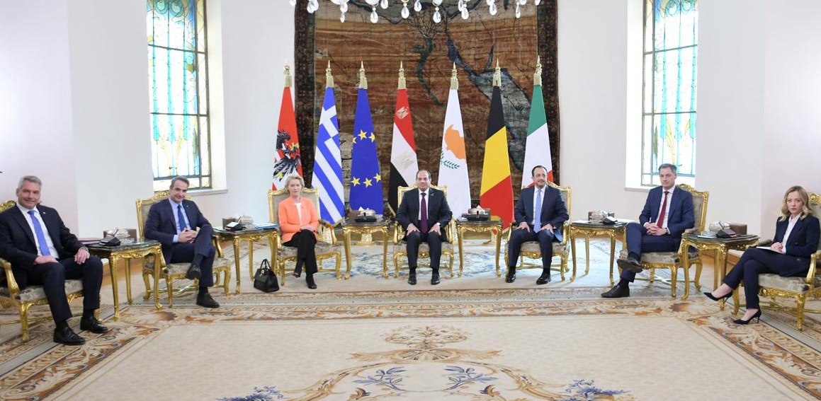 ورحب بمشاركة القادة الأوروبيين في فعاليات القمة المصرية الأوروبية ومن بينهم رئيسة وزراء إيطاليا جورجيا ميلوني ورئيس وزراء اليونان كيرياكوس ميتسوتاكيس لدورهما المقدر في دفع العلاقات المصرية الأوروبية وتعزيزها سواء ثنائيا أو من خلال الآليات المؤسسية للاتحاد الأوروبي.