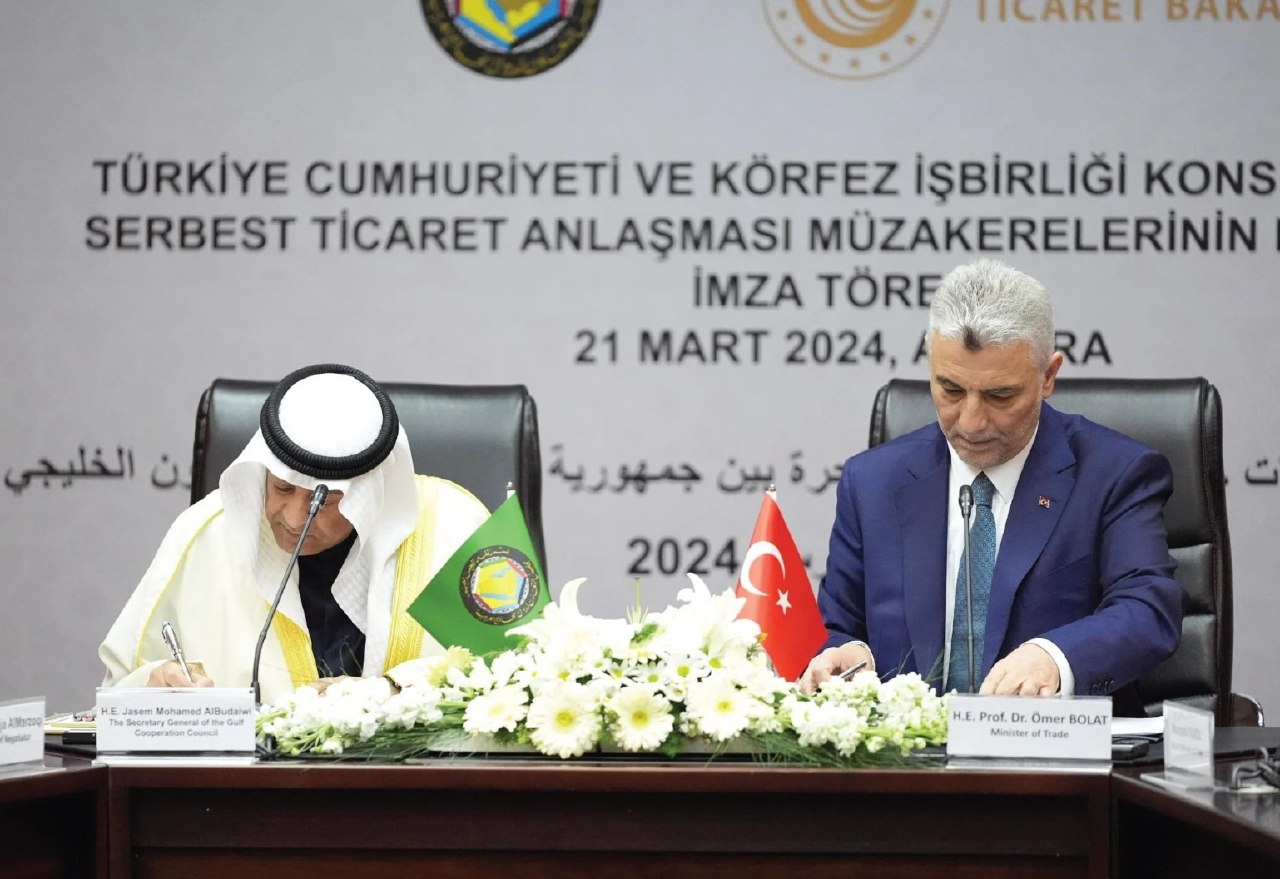 وقع امين مجلس التعاون لدول الخليج العربية جاسم البديوي، ووزير التجارة التركي الدكتور عمر بولاط، اليوم الخميس، بياناً مشتركاً لبدء مفاوضات للتجارة الحرة بين الطرفين وذلك في اطار جهود دول المجلس لتنويع مصادر دخلها واقتصاداتها.