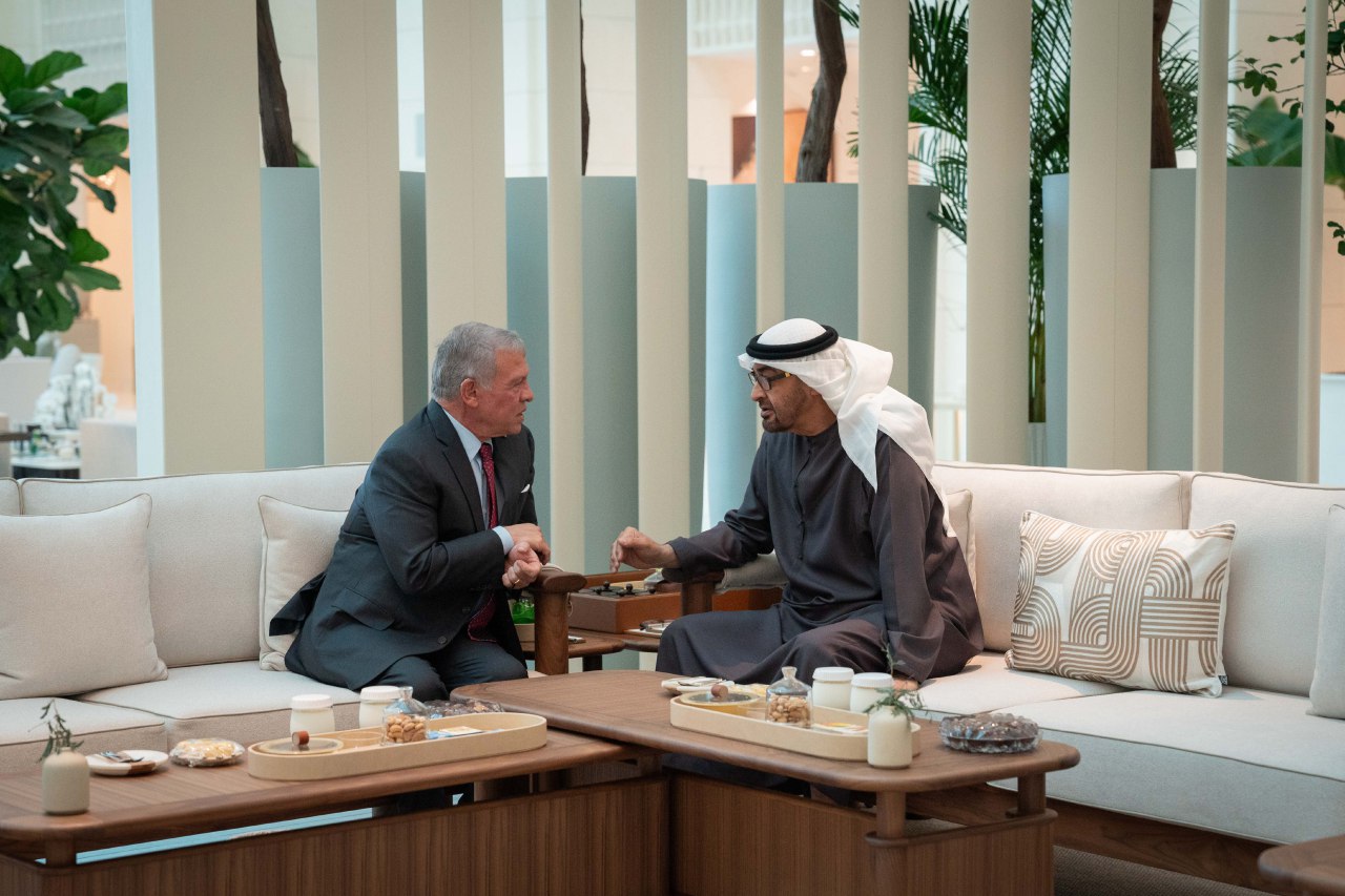 بحث رئيس دولة الامارات العربية المتحدة صاحب السمو الشيخ محمد بن زايد آل نهيان، اليوم، في قصر الشاطئ بأبوظبي، مع جلالة الملك عبدالله الثاني عاهل المملكة الأردنية الهاشمية، العلاقات المتينة والروابط التي تجمع البلدين والشعبين الشقيقين، وأهمية تعزيزها في شتى المجالات.
