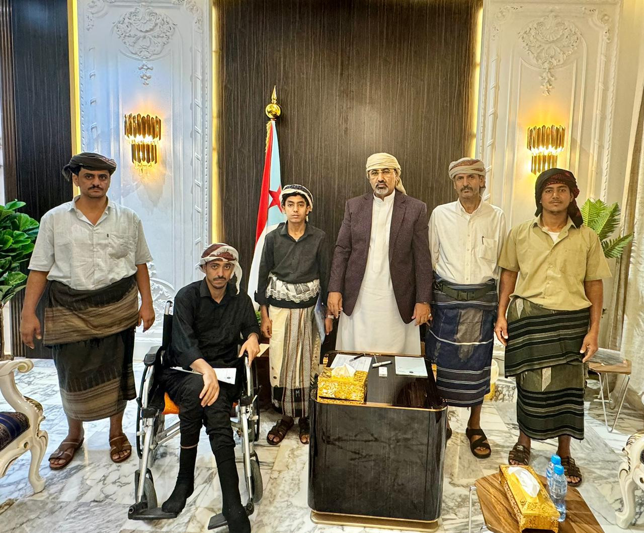 واطّلع الرئيس الزُبيدي من الجريح البطل أنيس سعيد الصريمي وإخوانه على أوضاع أسرتهم، حيث وجّه الرئيس باستكمال علاج الجريح، ورعاية أسرة الشهيد، مؤكداً أنه حريص على متابعة أوضاع أسر الشهداء ورعايتهم بشكل كامل، كجزء من النهج الذي يسير عليه المجلس الانتقالي الجنوبي.