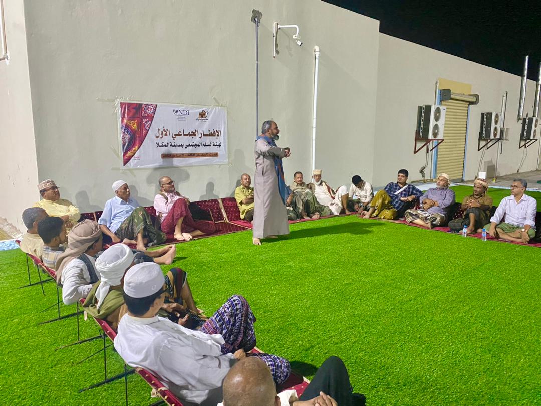 نظمت هيئة السلم المجتمعي بمدينة المكلا، اليوم السبت، إفطارها الجماعي الأول، بحضور المدير العام لمديرية مدينة المكلا، العميد عبدالله بايعشوت، والمدير العام لمكتب وزارة الشؤون الاجتماعية والعمل أحمد باظروس والمدير العام لمكتب وزارة الأشغال العامة والطرق بساحل حضرموت، المهندس صالح العمري.