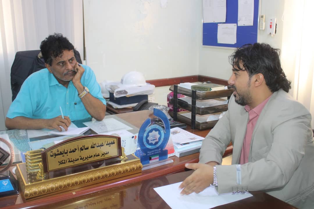 ناقش المدير العام لمديرية مدينة المكلا العميد ركن عبدالله سالم بايعشوت مع رئيس مؤسسة إسناد سالم أحمد بن دحيّم أفاق التعاون المشترك بين الجانبين.