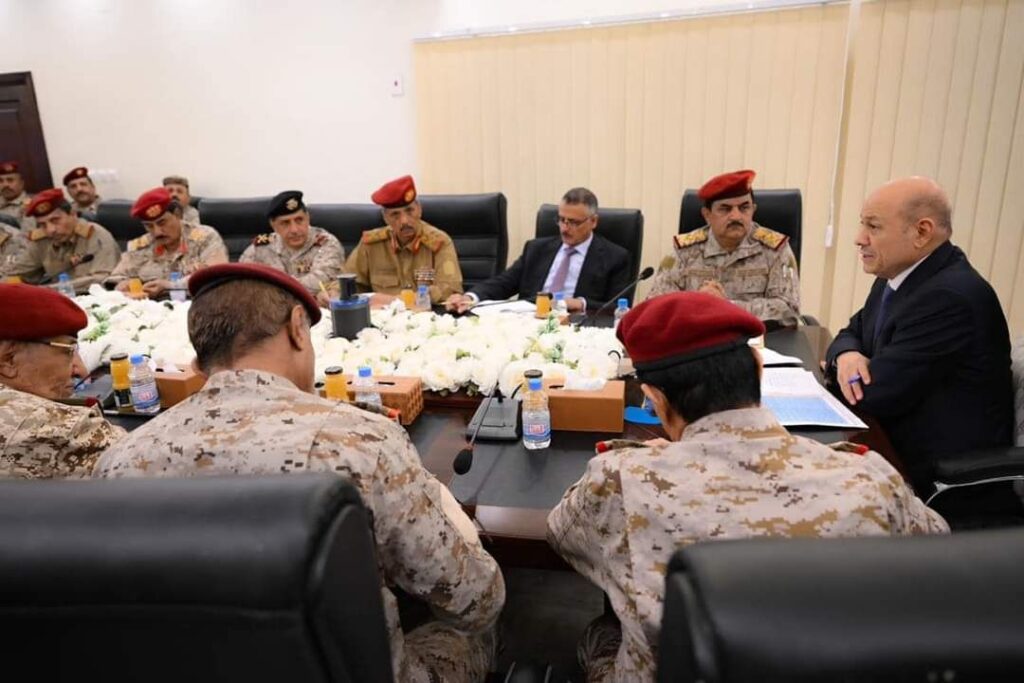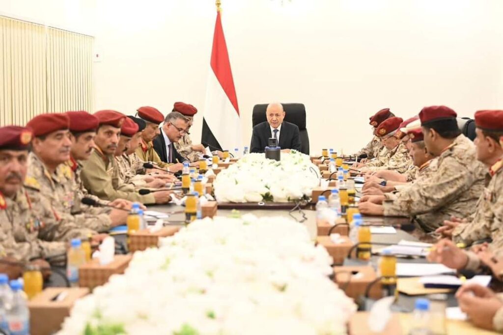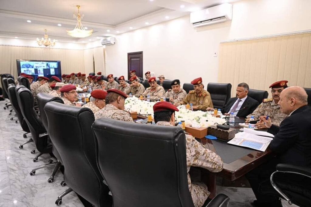 عقد فخامة الرئيس الدكتور رشاد محمد العليمي، رئيس مجلس القيادة الرئاسي، القائد الاعلى للقوات المسلحة، اجتماعا موسعا بقيادة وزارة الدفاع و رئاسة هيئة الأركان العامة، ورؤساء الهيئات، وقادة القوات والمناطق والمحاور العسكرية، وهيئة العمليات المشتركة.