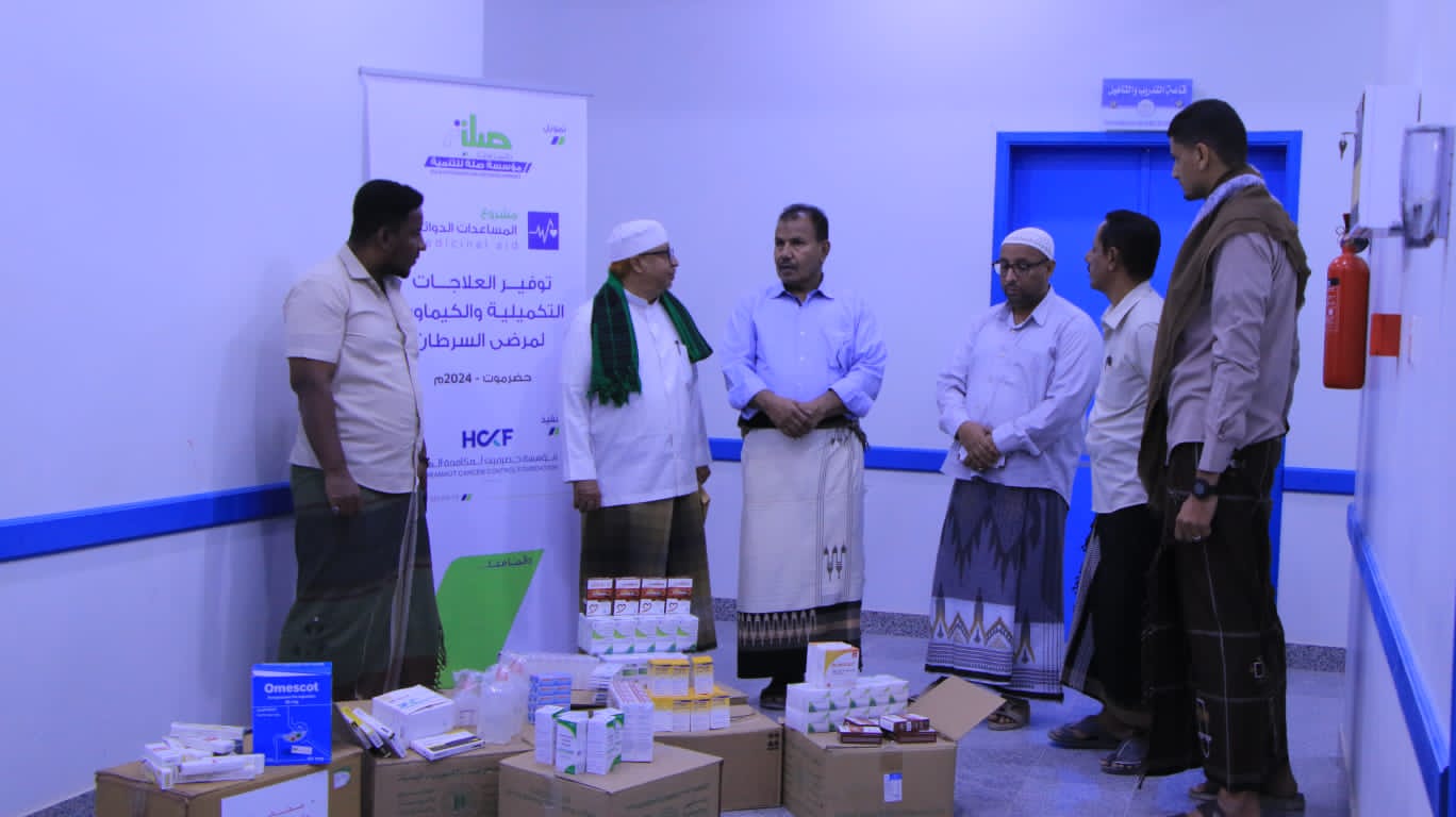 شهد وكيل محافظة حضرموت لشؤون مديريات الوادي والصحراء الاستاذ عامر سعيد العامري استلام المركز الوطني لعلاج الأورام، علاجات تكميلية وكيماوية لمرض السرطان مقدمة من مؤسسة حضرموت لمكافحة السرطان بتمويل مؤسسة صلة للتنمية ضمن مشروع المساعدات الدوائية.