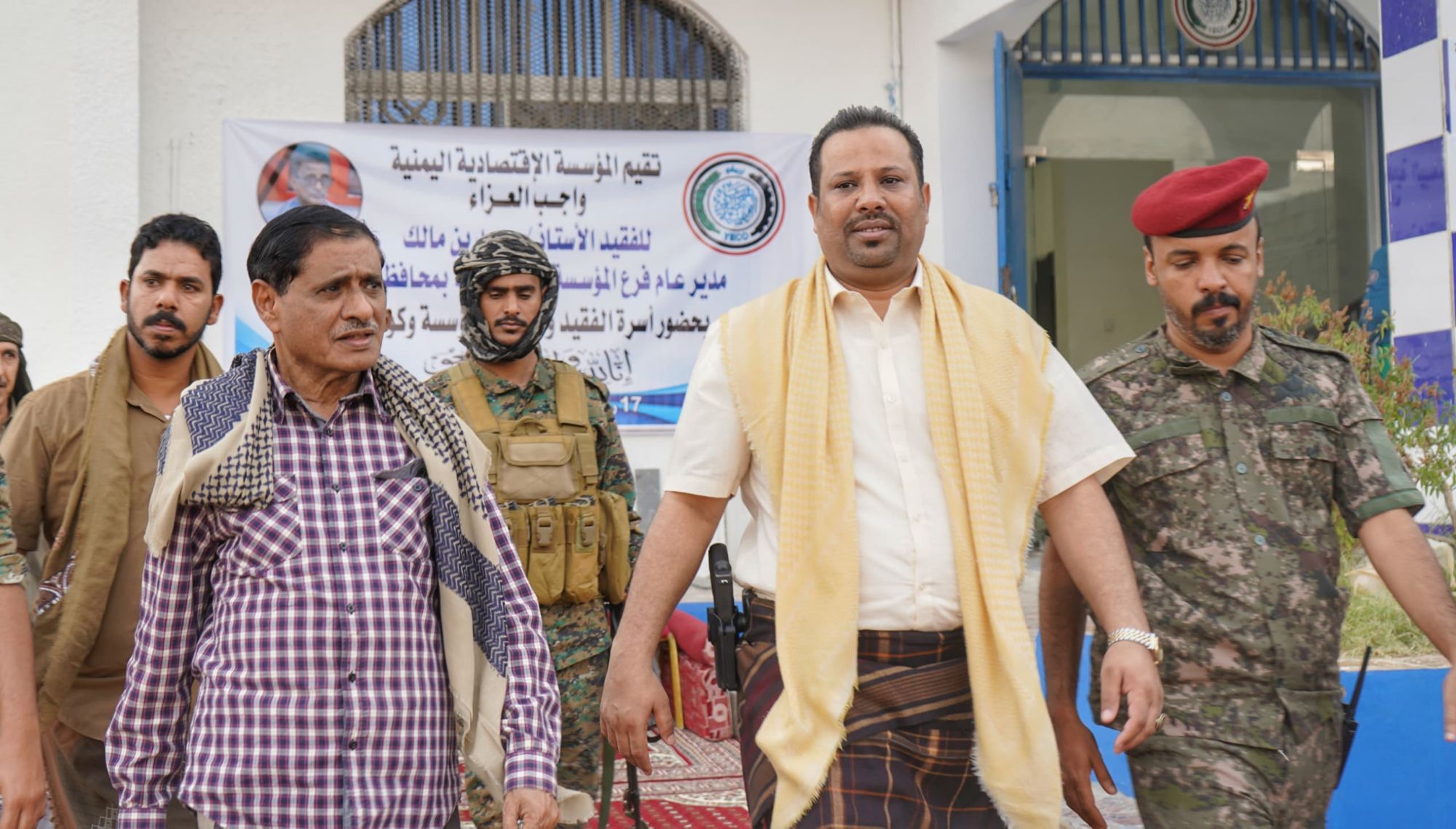 استقبل المدير العام للمؤسسة الاقتصادية اليمنية العميد سالمي السعيدي، وأسرة المغفور له بإذن الله تعالى محمد بن مالك، فقيد المؤسسة الاقتصادية، قيادة الدولة والسلطة المحلية بحضرموت، الذين قدّموا واجب العزاء والمواساة في وفاة فقيد المؤسسة والوطن.