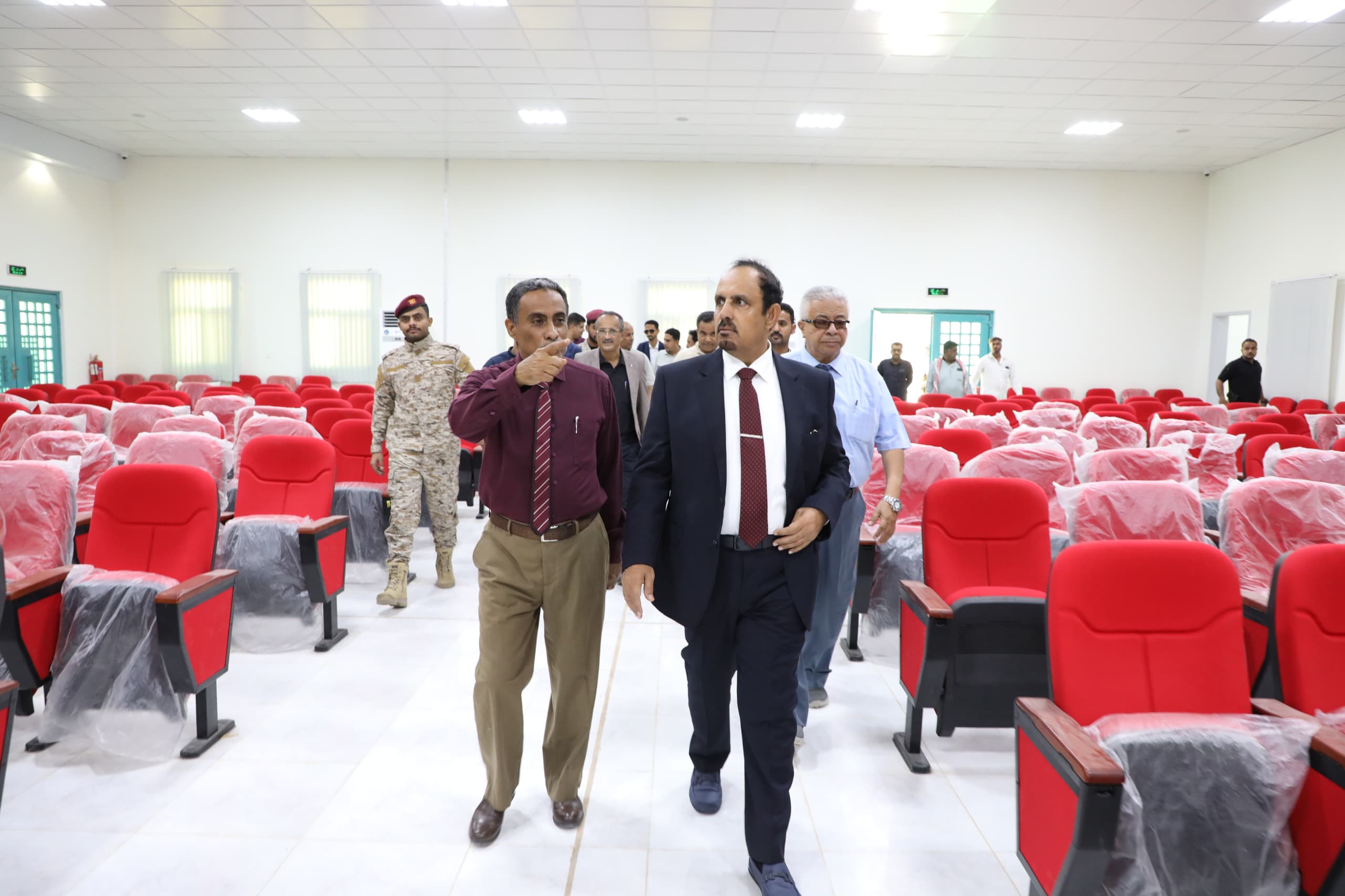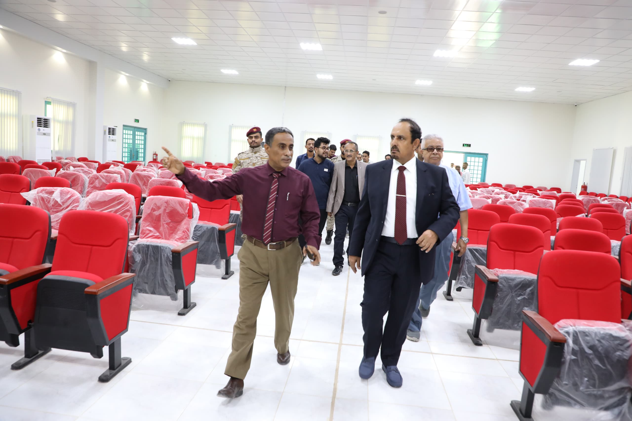 وتعرف المحافظ بن ماضي، من نائب رئيس الجامعة للشؤون الأكاديمية الدكتور عبدالله صالح بابعير ، وعميد كلية الطب والعلوم الصحية الدكتور سمير يسلم باعثمان، الى مكونات الصالة الذي تقع على مساحة اجمالية 968 متر مربع منها مساحة 756 متر مربع للصالة، وبلغت نسبة انجازها 95%، وتشمل صالة اجتماعات كبرى تتسع لـ 636 شخص، ومكاتب إدارية وملحقاتها.