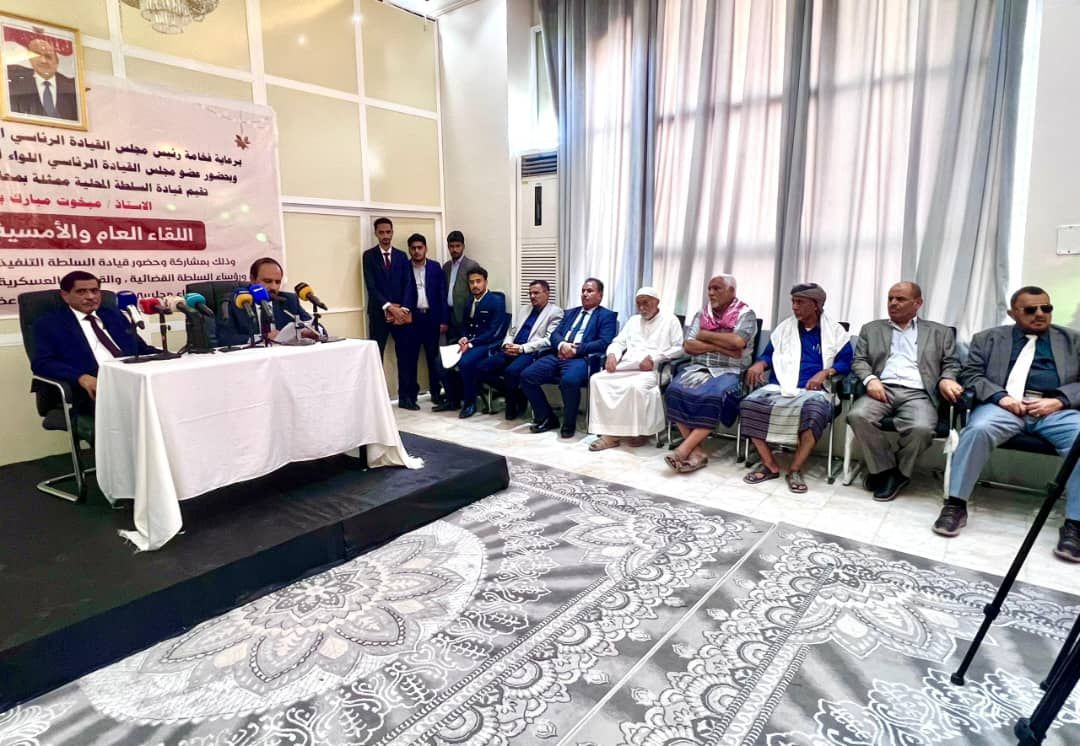 جاء ذلك خلال، الكلمة التوجيهية التي ألقاها اللواء الركن البحسني، في اللقاء العام والأمسية الرمضانية، التي أقامتها السلطة المحلية بمحافظة حضرموت، وبحضور المحافظ مبخوت مبارك بن ماضي، والأمين العام للمجلس المحلي صالح العمقي، وأعضاء مجلسي النواب والشورى، ووكلاء محافظة حضرموت، وقيادة السلطة التنفيذية بالمحافظة والمديريات، ورؤساء السلطة القضائية، والقيادات العسكرية والأمنية، وأعضاء الغرفة التجارية.