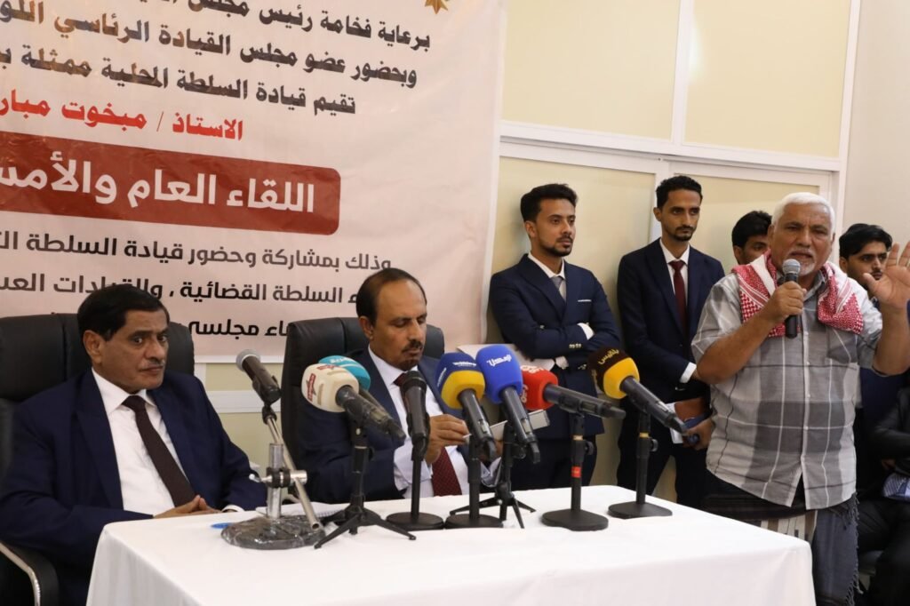نظّمت السلطة المحلية بحضرموت لقاءً موسعًا اليوم بالمكلا، لأعضاء مجلسي النواب والشورى وقيادات السلطة التنفيذية بالمحافظة والمديريات والسلطة القضائية والقيادات العسكرية والأمنية والأكاديمية وأصحاب الفضيلة العلماء، ومنسوبي غرفتي تجارة وصناعة حضرموت.