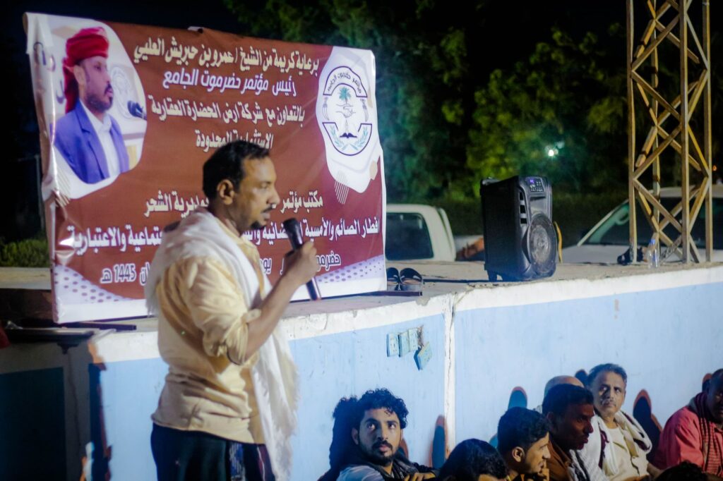 برعاية رئيس مؤتمر حضرموت الجامع الشيخ عمرو بن حبريش العليي وبدعم من شركة ارض الحضاره العقاريه الاستثماريه المحدوده نظم مكتب مؤتمر حضرموت الجامع بمديرية الشحر امسيه رمضانيه وافطار الصائم بحديقة الشحر العامه بحضور الناطق الرسمي لمؤتمر حضرموت الجامع الاستاذ صلاح بوعابس ونائب مدير عام مديرية الشحر الاستاذ مصبح العبد البحسني وعددً من مدراء المكاتب التنفيذية والشخصيات الاجتماعيه والاعتباريه والشبابيه وكافة اطياف القيادات السياسيه العامه والمدنيه والعسكريه وشخصياتها الاعتباريه من اكاديميين ورجال مال واعمال وممثلي منظمات مجتمع مدني وشخصيات عسكريه وامنيه .