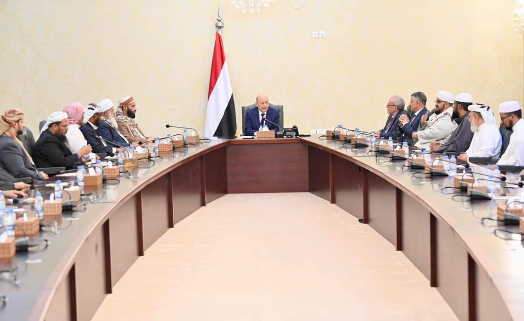 وعبر رئيس مجلس القيادة باسمه وإخوانه أعضاء المجلس عن عظيم إجلاله وتقديره للعلماء، والخطباء والمرشدين، والدعاة، ودورهم في تحصين الأمة، والسلم الاجتماعي، وحشد الطاقات وتوجيهها في خدمة المصلحة العامة للمواطنين، وقضاياهم المركزية المتمثلة باستعادة مؤسسات الدولة وإنهاء انقلاب المليشيات الحوثية، ومكافحة الإرهاب بأشكاله ومصادره المختلفة، وتحفيز جهود التنمية وتحسين الخدمات.