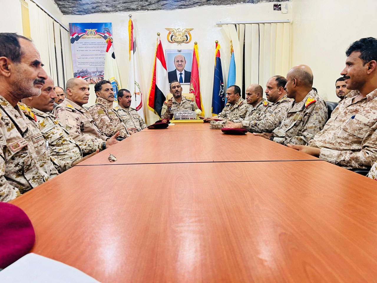 واستمع، من القادة إلى احاطات موجزة للموقف الميداني والعملياتي في مسرح العمليات، ومستوى الجاهزية القتالية والتحصينات الدفاعية للوحدات العسكرية..موجها بتعزيز التعاون والتنسيق للحفاظ على اليقظة والاستعداد القتالي والمعنوي للتعامل مع أية تطورات والتعامل الحازم مع تصعيدات تنظيم جماعة الحوثي الارهابية الايرانية وردع عملياتها العدائية اليائسة.