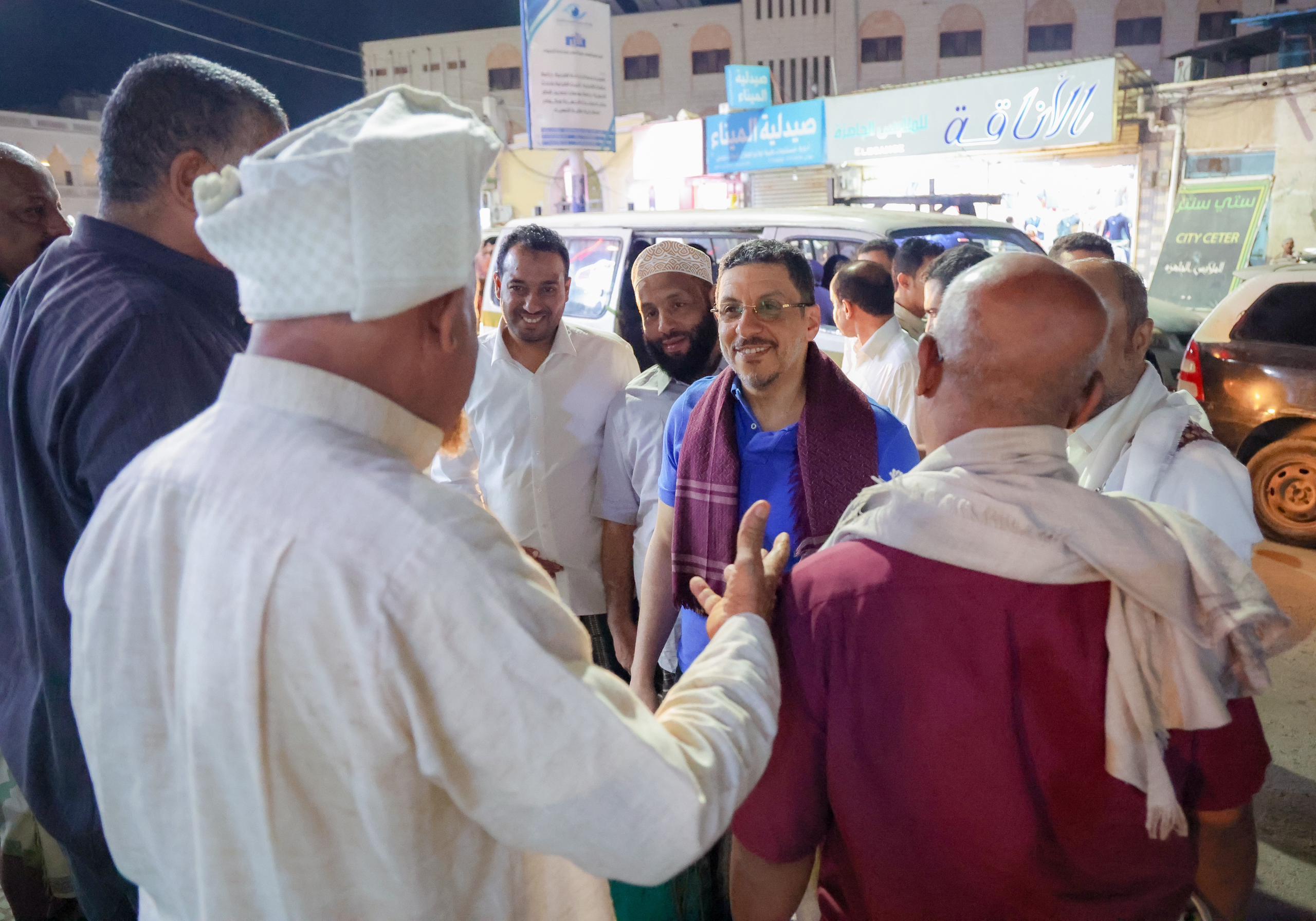 قام رئيس مجلس الوزراء الدكتور أحمد عوض بن مبارك، مساء الاثنين، بجولة ميدانية في عدد من احياء وشوارع مدينة المكلا بمحافظة حضرموت، التقى خلالها المواطنين واستمع اليهم والى قضاياهم وأجرى معهم أحاديث ودية حول تطلعاتهم وملاحظاتهم.