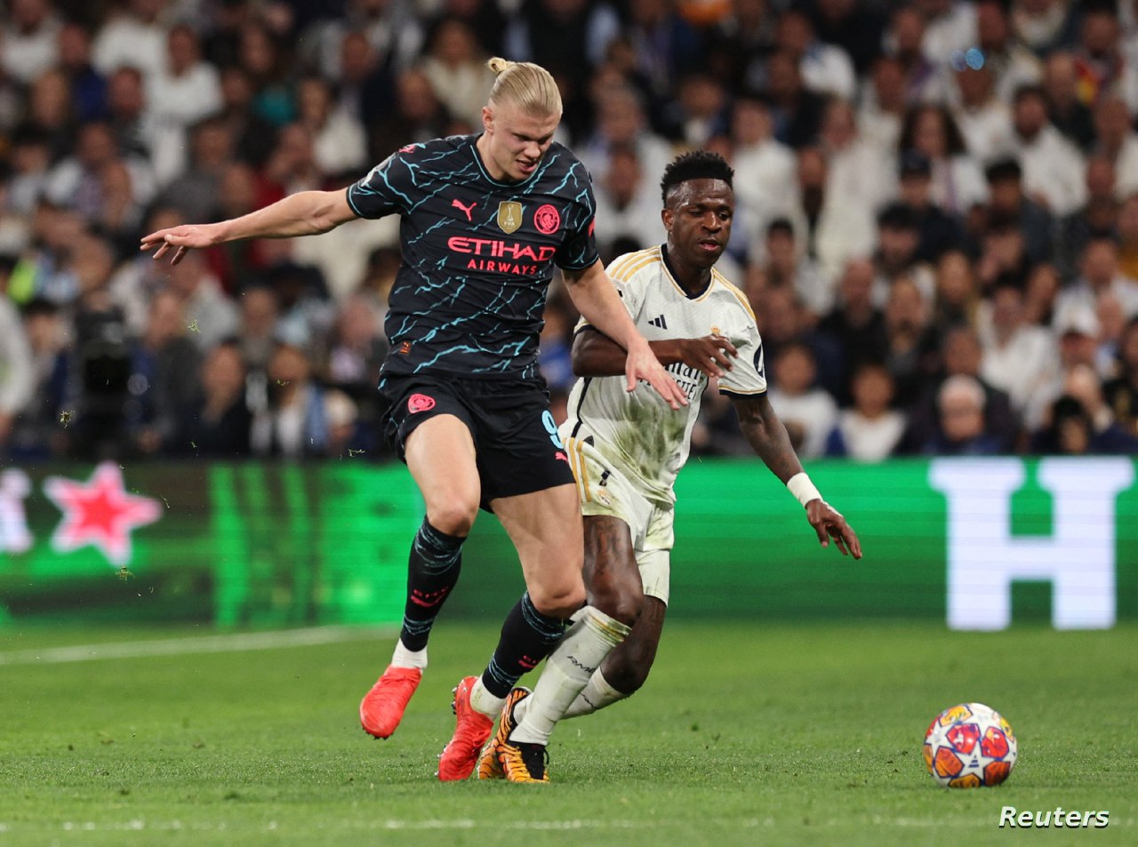 تعادل ريال مدريد الإسباني مع ضيفه مانشستر سيتي الإنجليزي بثلاثة اهداف لكل منهما في المباراة التي جمعتهما على استاد سانتياغو بير نابيو في ذهاب الدور ربع النهائي لدوري أبطال أوروبا لكرة القدم.