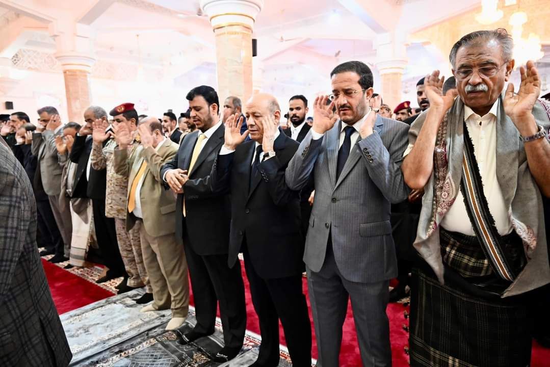ادى فخامة الرئيس الدكتور رشاد محمد العليمي، رئيس مجلس القيادة الرئاسي، و عضوا المجلس الدكتور عبدالله العليمي، وعثمان مجلي، وعدد من قيادات الدولة، شعائر صلاة عيد الفطر المبارك، مع جموع المصلين، في العاصمة المؤقتة عدن.